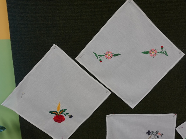 Na zajęciach kreatywnych podjęliśmy się zapomnianych robótek, czyli wyszywania serwetek, a właściwie haftowania. Odrysowaliśmy wzory, zakupiliśmy nici i do dzieła. Pomagała nam pani Krystyna Balewska, bo to praca trudna i żmudna. Haftowanie sprawiło nam dużo radości, a przede wszystkim były to chwile ciszy i spokoju.