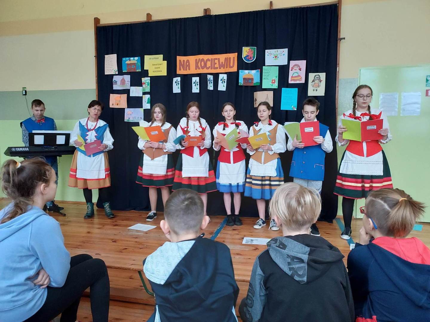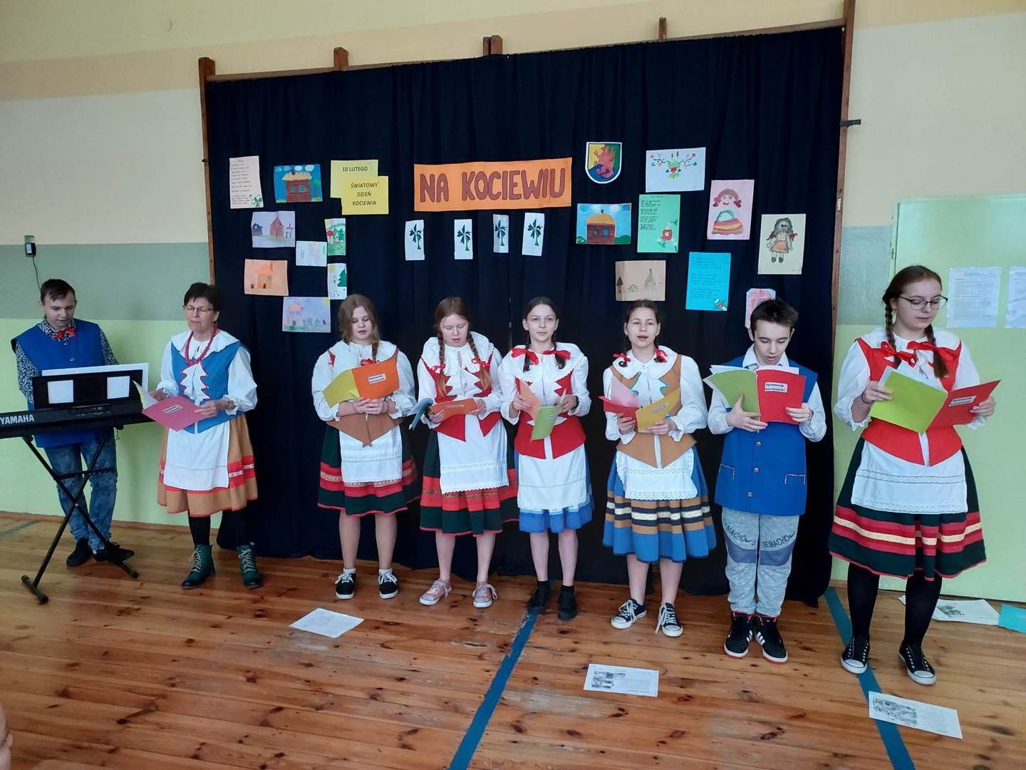 10 lutego obchodzimy Światowy Dzień Kociewia. Tego dnia będziemy na feriach , dlatego już w czwartek – 26 stycznia klasa ósma wraz z panią Krystyną Balewską zaprosiła nas na spotkanie z kulturą kociewską. Mogliśmy podziwiać piękne ludowe stroje, wsłuchać się w kociewską gwarę i spróbować zaśpiewać oryginalne kociewskie piosenki.