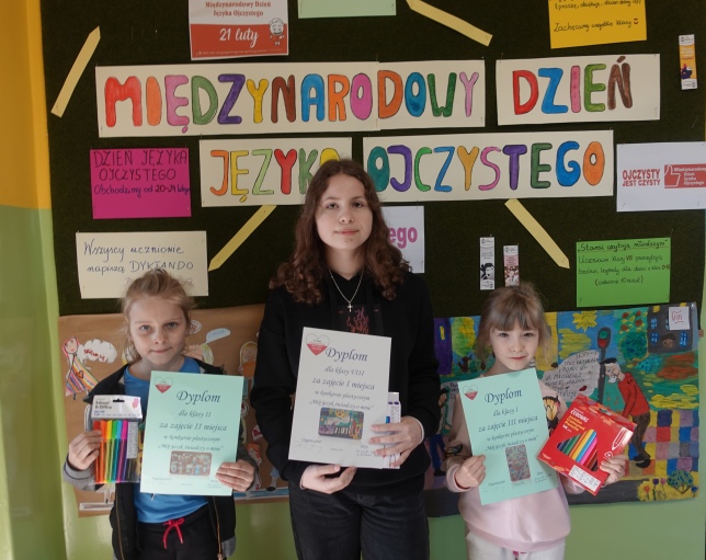 Z okazji Międzynarodowego Dnia Języka Ojczystego pani Krystyna Balewska z pomocą samorządu szkolnego przez cały tydzień organizowała wiele aktywności dla uczniów. Między innymi były to „potyczki ortograficzne”, czyli dyktanda. Z poszczególnych klas wyłoniono osoby, które popełniły najmniejszą ilość błędów. Z klasy II była to Natasza Burchardt, z klasy IV Cezary Jażdżewski, z klasy V Tobiasz Szych, z klasy VI Antoni Waśniewski, z klasy VII Kacper Ciechanowski, a z klasy VIII Julia Michalska.
