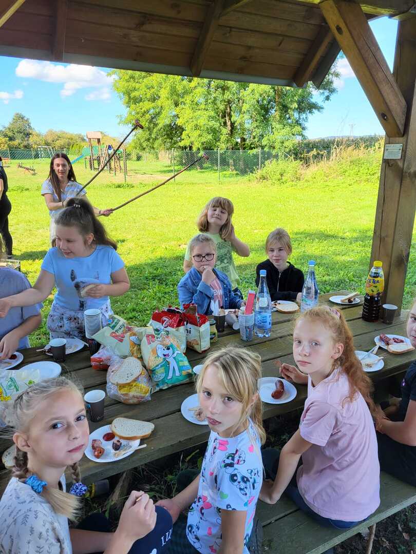 W piątek, 15 września br., uczniowie klas I, II i III razem spędzili czas na wesołej zabawie i wspólnym poczęstunku. Pogoda i humory dopisywały 🙂 wszystkim. Rodzice przygotowali pyszne przekąski i kiełbaski z ogniska. Wszystkim bez wyjątku, również mamom, ogromną przyjemność sprawiły zabawy ze śpiewem.