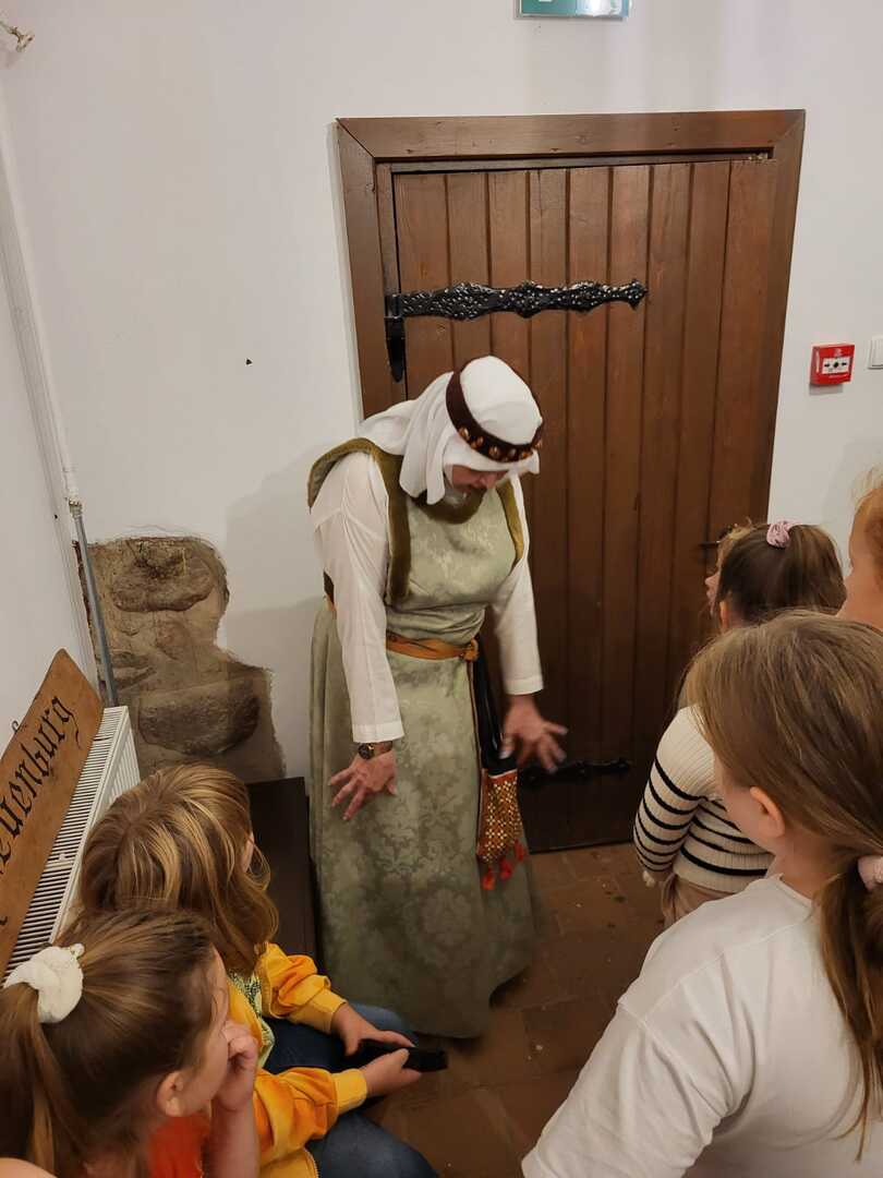 Kolejnym punktem wycieczki było zwiedzanie muzemu w Zamku. Pani Elżbieta Kucińska wspaniale wprowadziła uczniów w atmosferę średniowiecznego życia i zwyczajów naszych przodków.