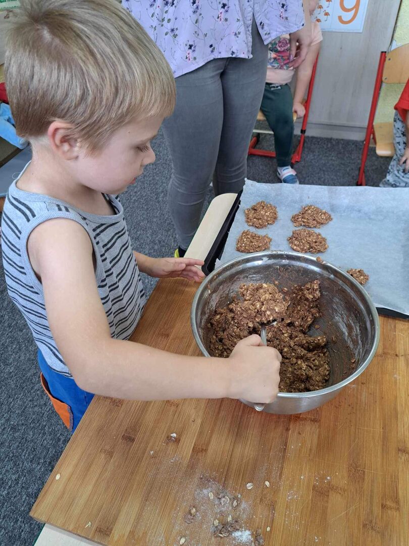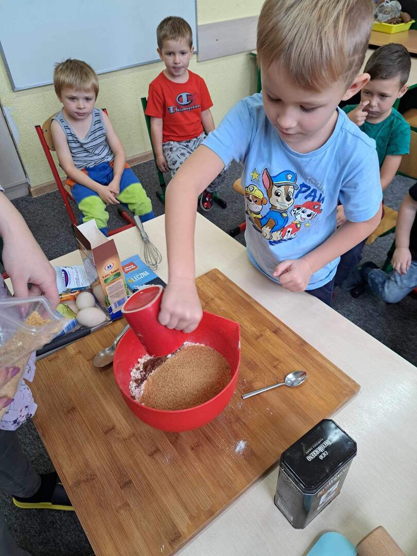 Dzieci z oddziału przedszkolnego miesiąc październik rozpoczęły od poznawania darów jesieni. Największą atrakcją był kosz pełen dobroci płynących z natury. 🍐🥕🌽 Przedszkolaki wykonały mnóstwo prac związanych z bieżącą tematyką: kolorowe parasole, puszyste owieczki i witraże z liści, które już zdobią naszą salę. Poza tym dzieci dowiedziały się o pochodzeniu rónych produktów. Pod koniec miesiąca teoria spotkała się z praktyką. Zakasaliśmy rękawy i od podstaw przygotowaliśmy i upiekliśmy ciasteczka owsiane! 😊 Dzieci były zachwycone i aktywnie brały udziałw zajęciach.