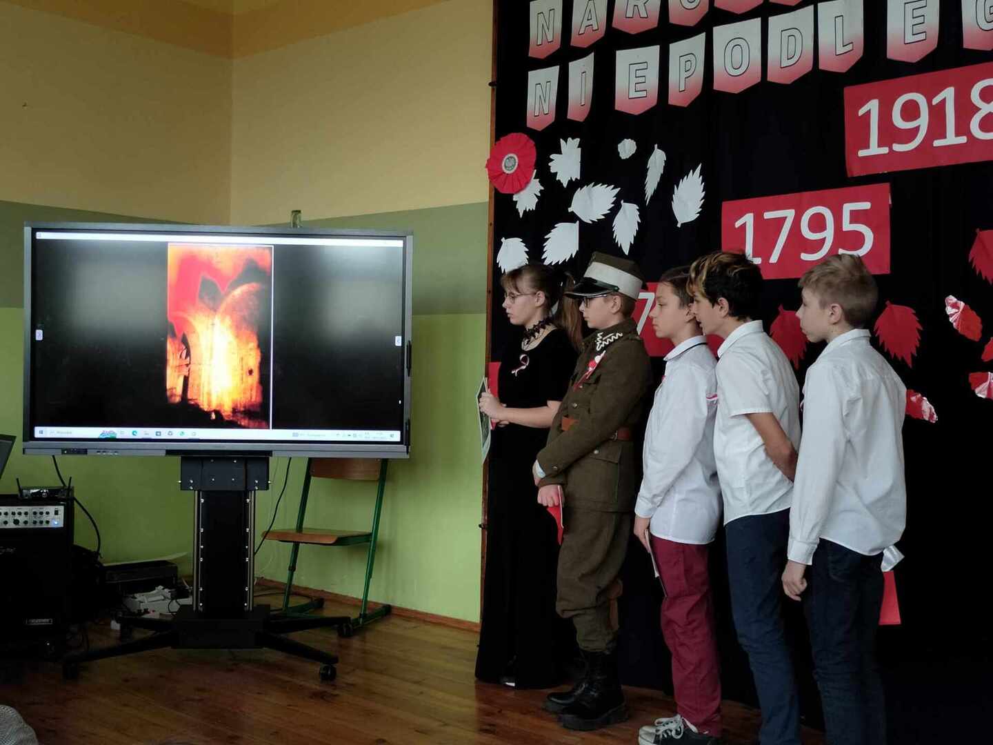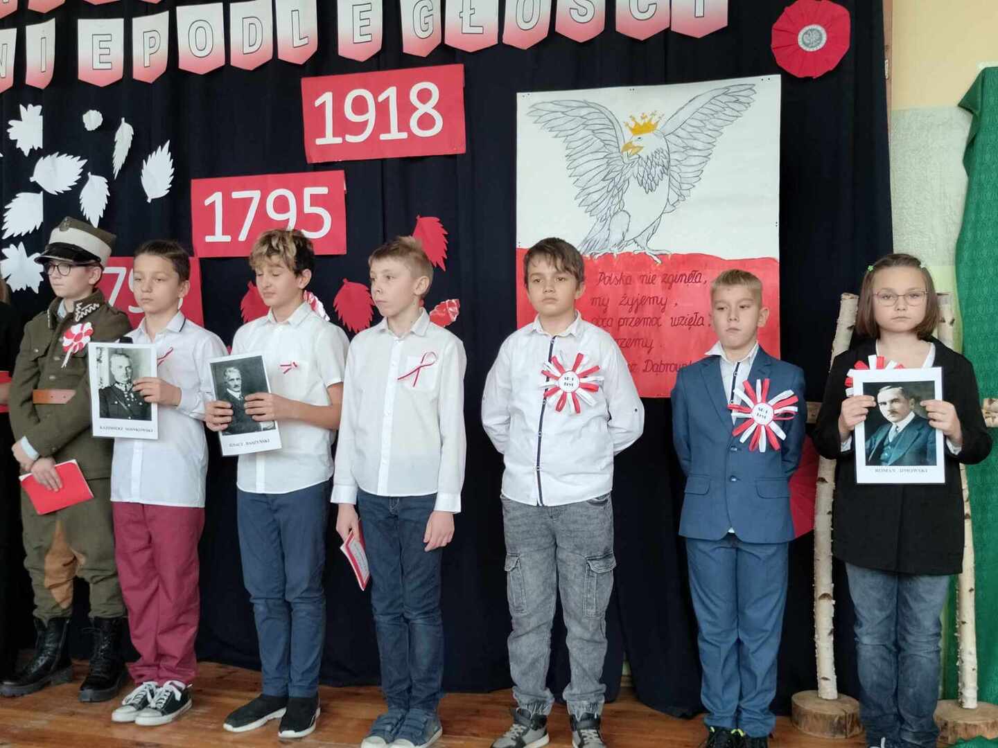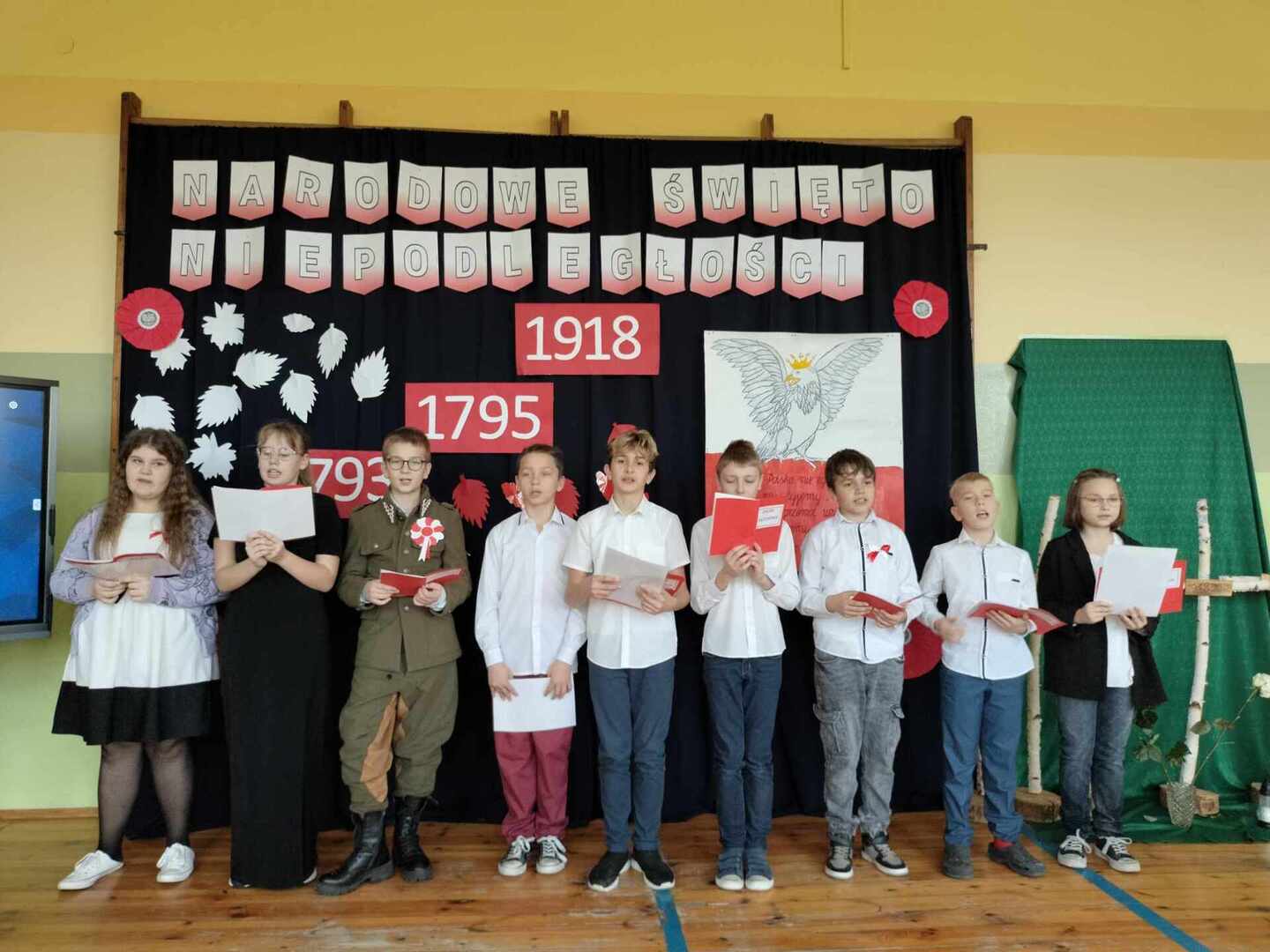 9 listopada 2023 r. uczciliśmy w naszej szkole 105. rocznicę odzyskania niepodległości przez naszą Ojczyznę. Uczniowie klas starszych IV, V i VI przygotowali bardzo wzruszający montaż słowno - muzyczny. Sceny z kart historii, obrazy, jakby żywe oraz pieśni pozwoliły wszystkim przenieść się myślami do tamtych dni... Niejednemu z nas zakręciła się łza w oku.