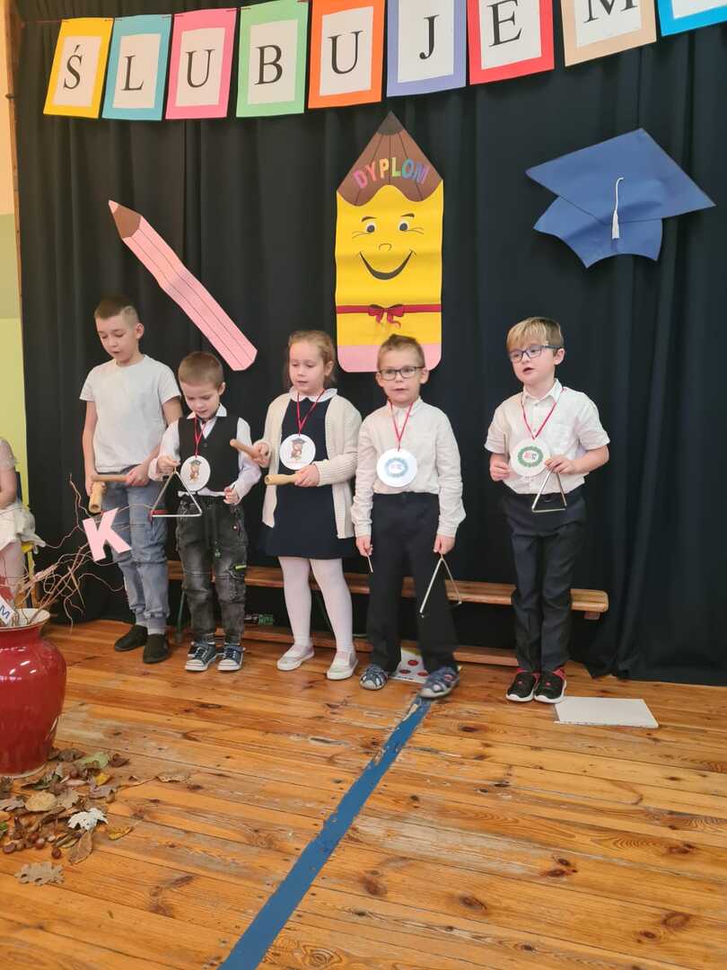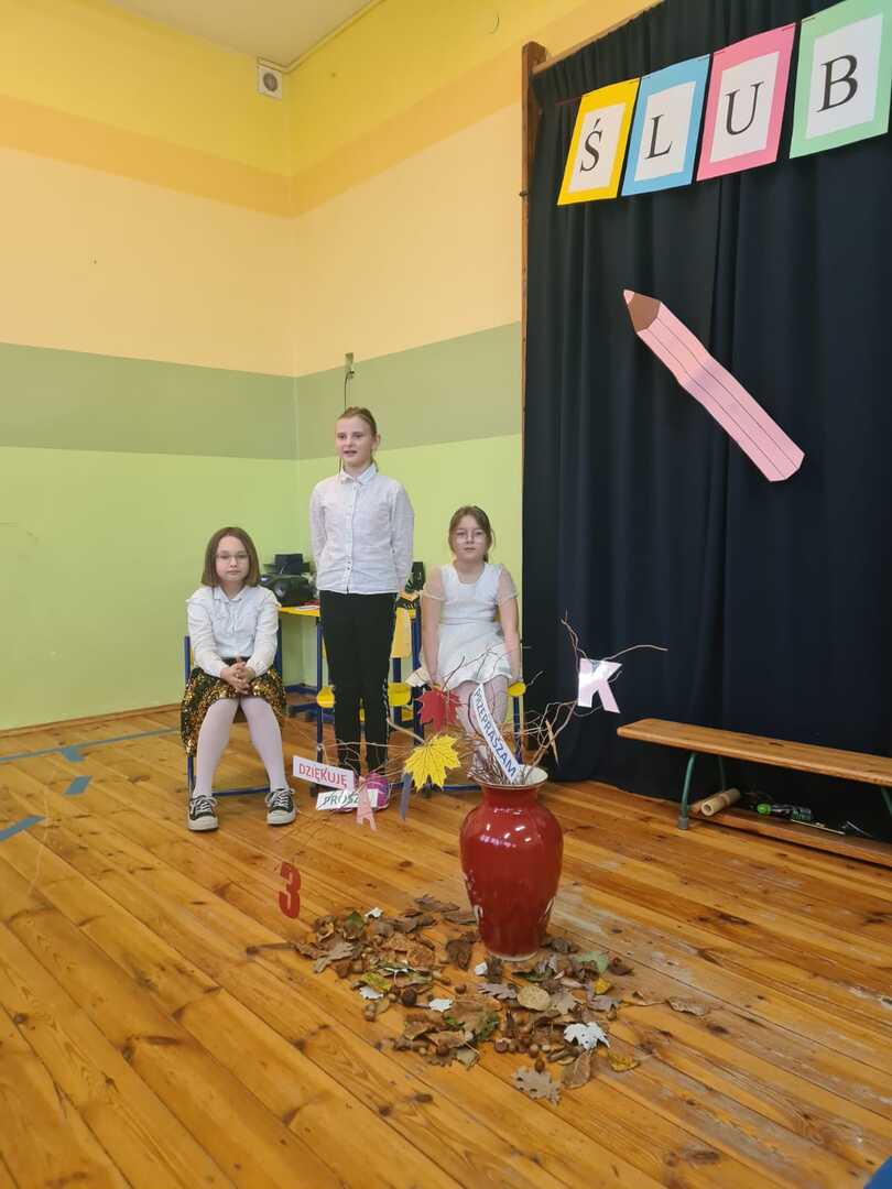 Bohaterowie tego spotkania (pierwszaki) wspierani przez uczniów klasy IV przedstawili wesoły program artystyczny. Zostali też poddani wielu próbom. Śpiewali piosenki, rozwiązywali zagadki i udowodnili, pijąc sok z cytryny, że są gotowi złożyć ślubowanie.