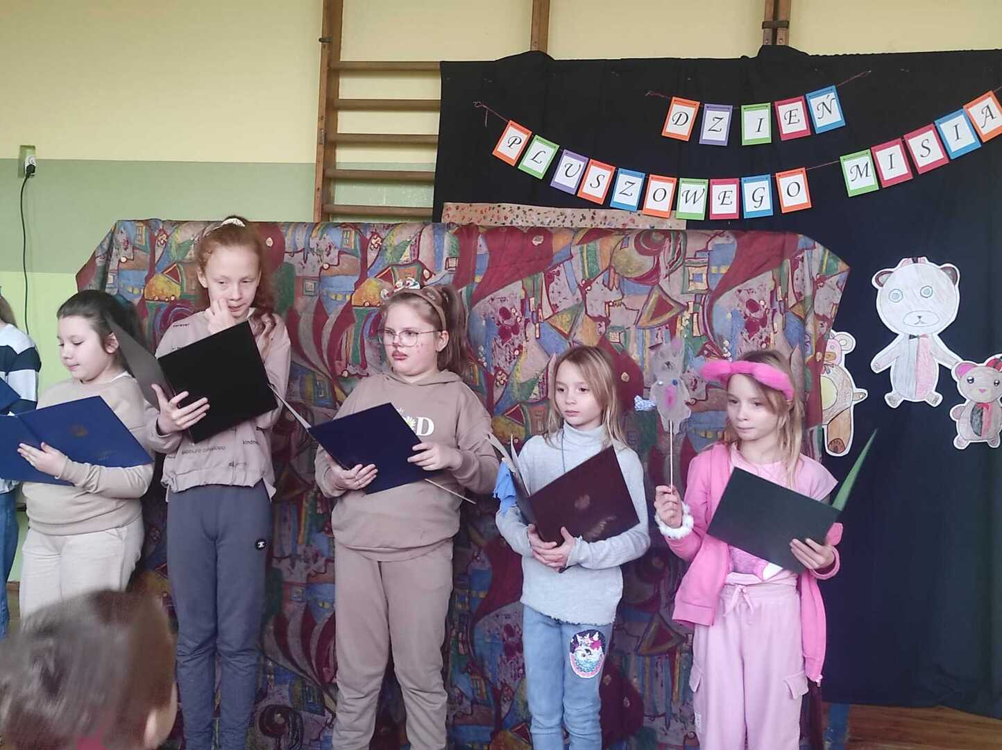 25 listopada najmłodsze dzieci naszej szkoły wraz z wychowawczyniami wzięły udział w Światowym Dniu Pluszowego Misia. Atrakcji było co niemiara. Klasa III przygotowała piękny teatrzyk, nawiązujący do historii tegoż pluszaka. Były zabawy z chustą, konkurs wykonania pracy plastycznej, śpiewy, pląsy oraz wiele innych atrakcji. Uśmiechy towarzyszyły każdemu dziecku. Nawet pojawił się ulubiony przez misie miodek!