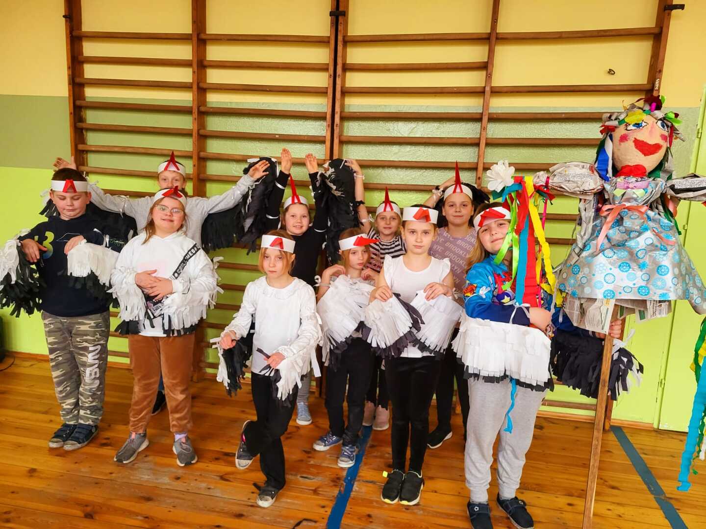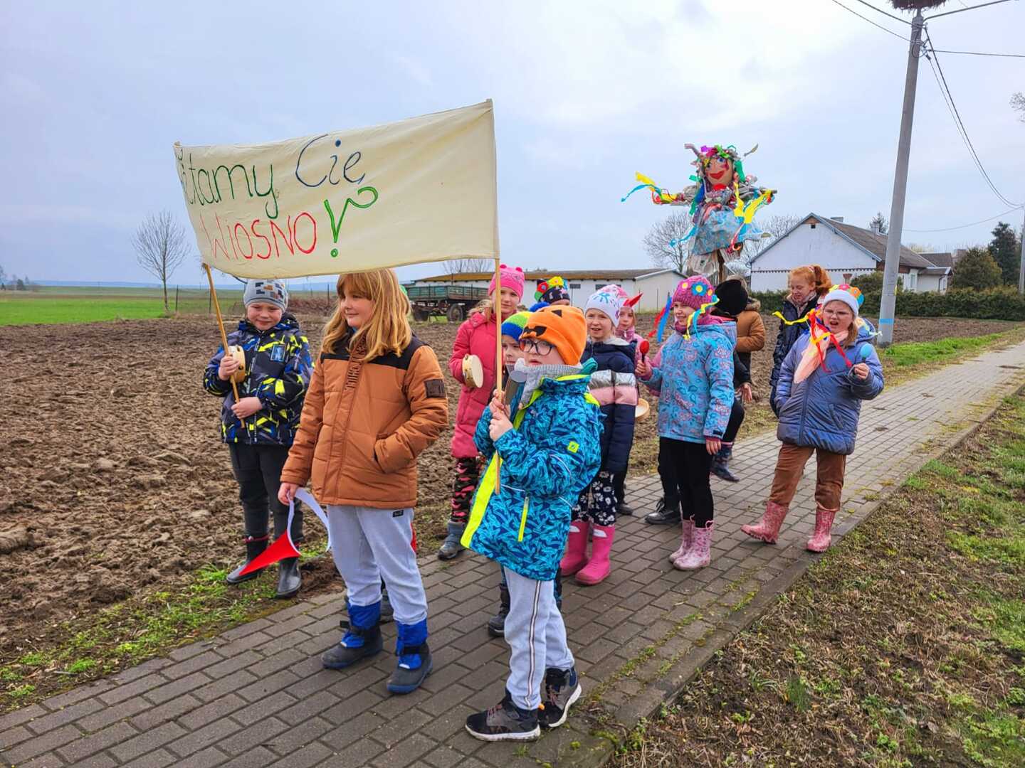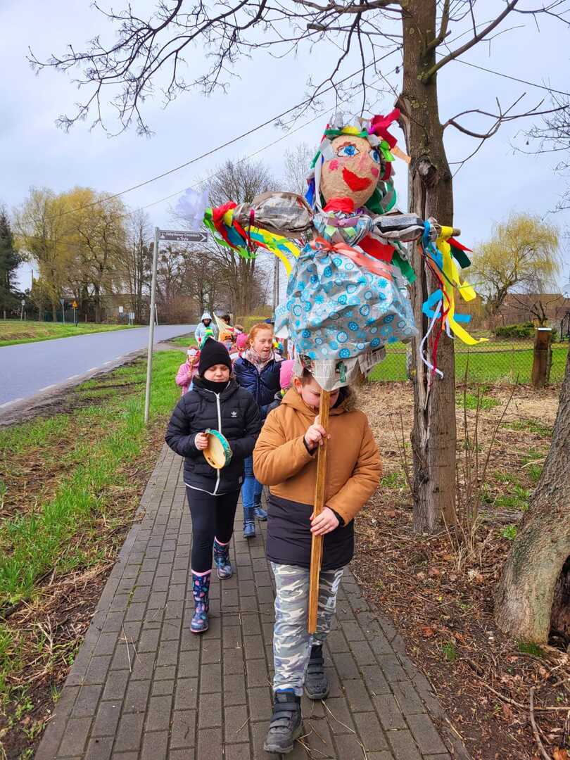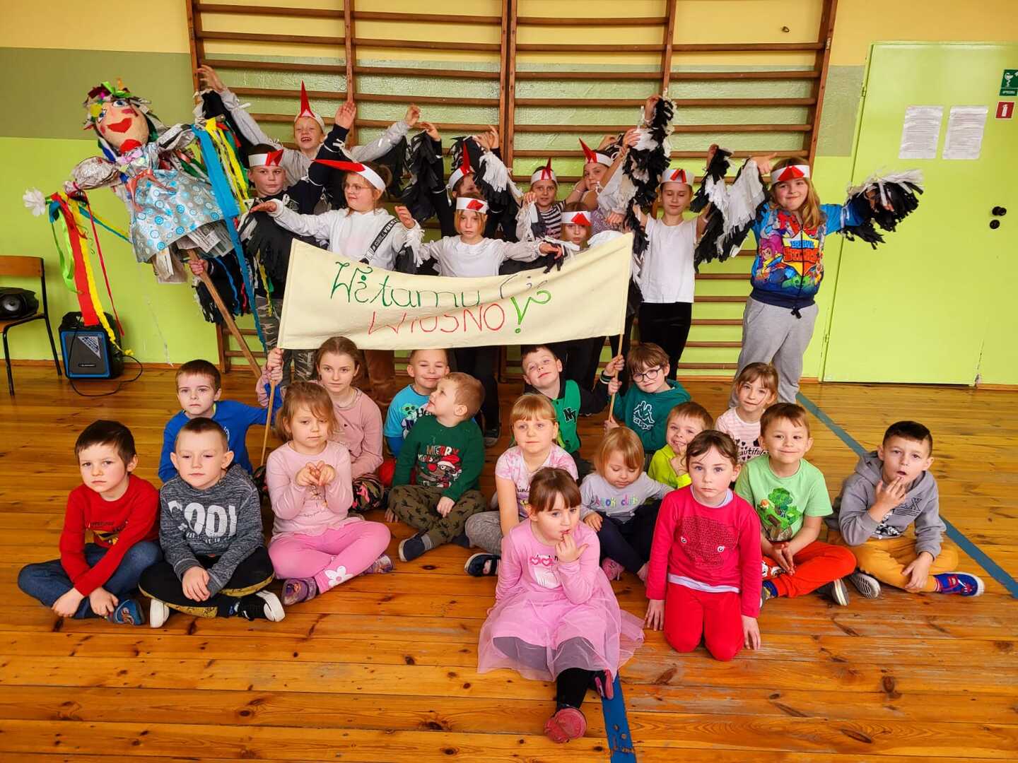 Wiosnę w tym roku powitaliśmy inaczej niż zwykle. Pogoda taka, wody w powietrzu i na ziemi tyle, że do Wisły trudno byłoby nam dotrzeć. W sali gimnastycznej zaśpiewaliśmy, zatańczyliśmy ( dzieci z oddziału przedszkolnego i klasy I, II, III) i ruszyliśmy wiosenną głosną paradą przez wieś. Po powrocie spaliliśmy Marzannę w bezpiecznym miejscu i ostatecznie pożegnaliśmy się z zimą. Było radośnie , wbrew ponurej pogodzie i ekologicznie, bo nie zanieczyściliśmy naszej Królowej Rzek. Życzymy wszystkim pięknej Wiosny i pozdrawiamy zielono.