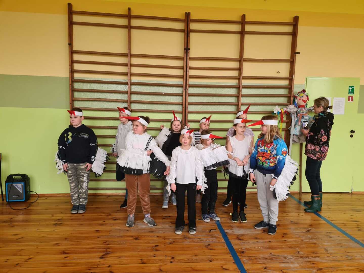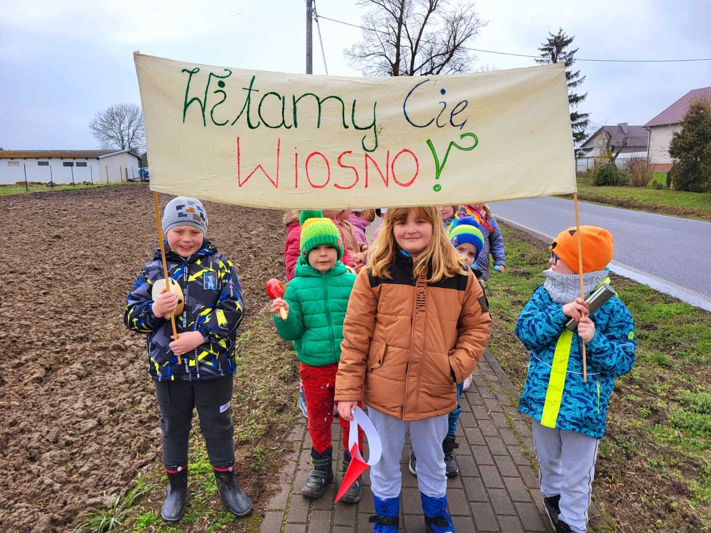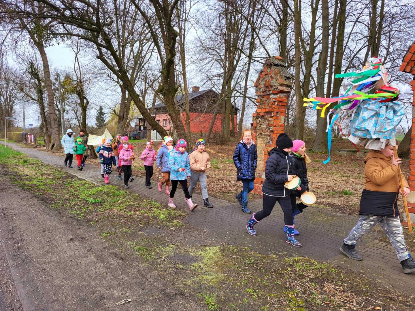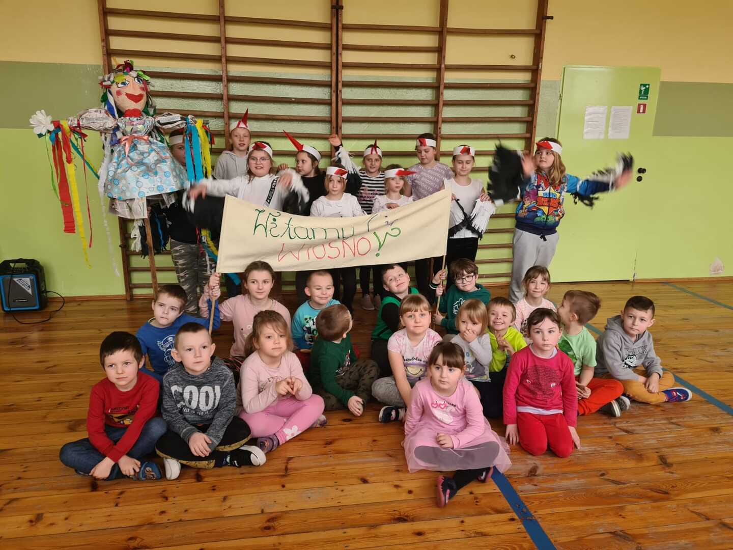 Wiosnę w tym roku powitaliśmy inaczej niż zwykle. Pogoda taka, wody w powietrzu i na ziemi tyle, że do Wisły trudno byłoby nam dotrzeć. W sali gimnastycznej zaśpiewaliśmy, zatańczyliśmy ( dzieci z oddziału przedszkolnego i klasy I, II, III) i ruszyliśmy wiosenną głosną paradą przez wieś. Po powrocie spaliliśmy Marzannę w bezpiecznym miejscu i ostatecznie pożegnaliśmy się z zimą. Było radośnie , wbrew ponurej pogodzie i ekologicznie, bo nie zanieczyściliśmy naszej Królowej Rzek. Życzymy wszystkim pięknej Wiosny i pozdrawiamy zielono.