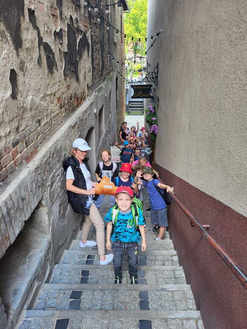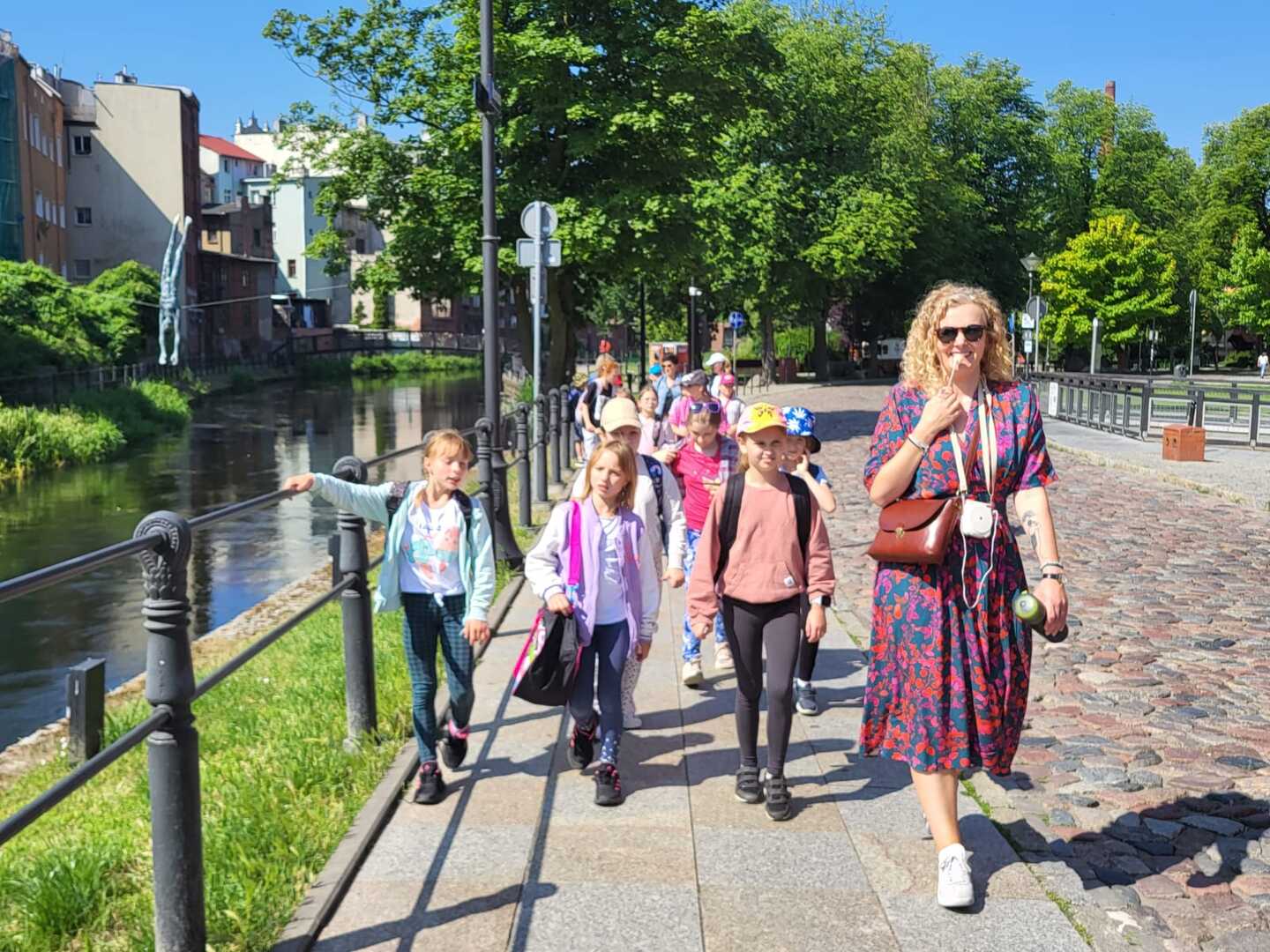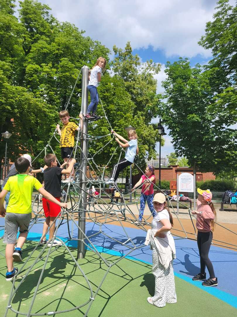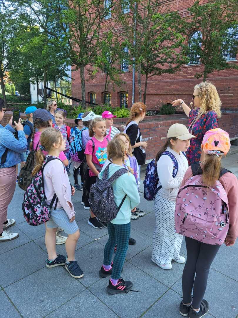 5 czerwca klasy młodsze zwiedzały Bydgoszcz. Bliżej poznały ją na spacerze z panią Darią, która oprowadzając po najstarszych miejscach miasta opowiadała bardzo ciekawe historie i legendy. Interesująca była wizyta w Muzeum Brudu i Mydła- tu również dzieci poznały niezwykłe opowieści związane z higieną na przestrzeni wieków w różnych miejscach Europy. Obiad w Bistro pod Papugami wszystkim smakował. Po obiedzie mieliśmy dużo czasu na swobodne zwiedzanie. Wszystkim najbardziej podobała się Wyspa Młyńska, na której nie można można się nudzić. Wjechaliśmy na wieżę widokową, by popatrzeć na Bydgoszcz z góry, zwiedziliśmy wystawę ceramiki, szukaliśmy z mapą "wiszących" rzeźb ( wszystkie 10 znaleźliśmy). Był czas na relaks na placu zabaw, lody i zakup pamiątek. Na koniec wycieczki czekał nas wspaniały rejs tramwajem wodnym po Brdzie, podczas którego mogliśmy wysłuchać kolejnych historii o Bydgoszczy, podziwiać miasto i doświadczyć przepłynięcia prze śluzę. Pogoda tego dnia była piękna, miastootwarte na naszą ciekawość, dzieci świetnie się bawiły, wróciły pełne nowej wiedzy, wrażeń i przeżyć.