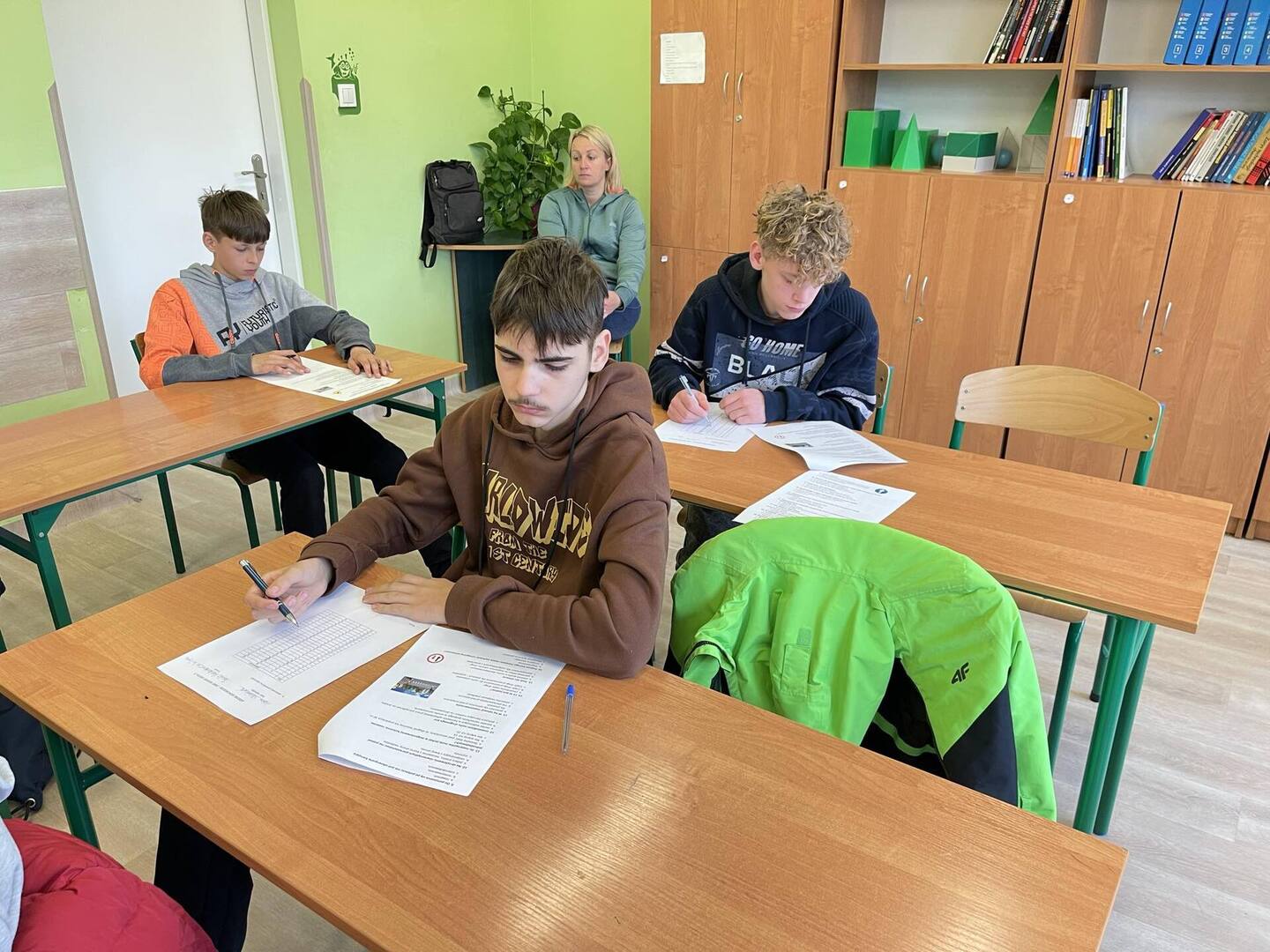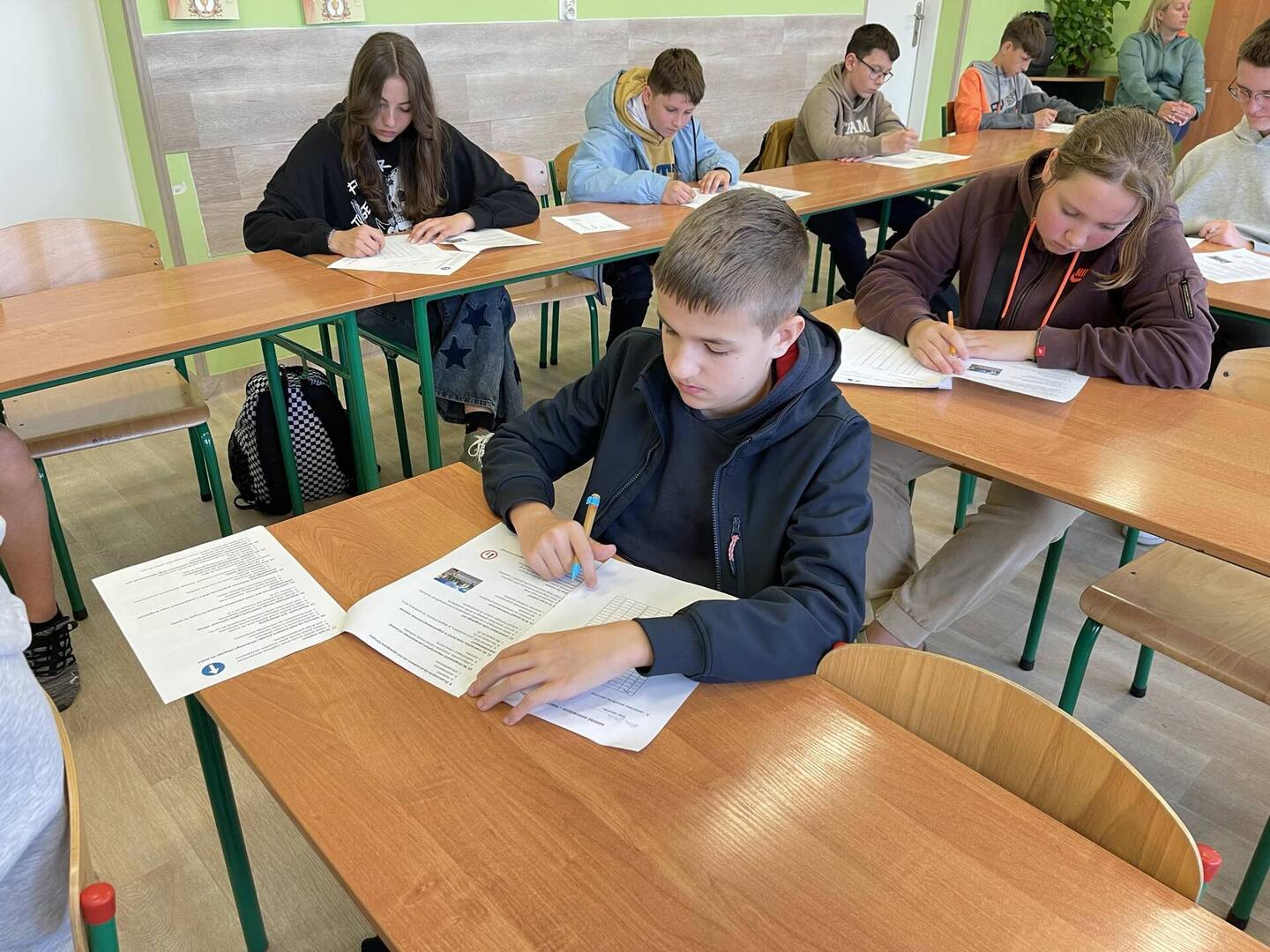22.04.2024 r. w Grupie, uczniowie naszej szkoły uczestniczyli w Ogólnopolskim Turnieju Bezpieczeństwa w Ruchu Drogowym - na szczeblu rejonowym. W rywalizacji teoretycznej i praktycznej wzięły udział drużyny z 6 szkół: z Dragacza, Michala, Małego Komorska, Warlubia, Nowego i Tryla. W kategorii 10 -12 lat(GR I) szkołę reprezentowali Krzysztofa Ptak, Magdalena Lach, Mikołaj Sobolewski, Igor Gottschalk i zajęli III miejsce. W kategorii 13 - 15 lat (GR II), uczniowie klasy VIII: Igor Muszyński, Adrian Janicki, Antoni Sławiński, którzy zajęli IV miejsce (w teście wiedzy chłopcy wywalczyli II miejsce). Opiekun, Małgorzata Jopek