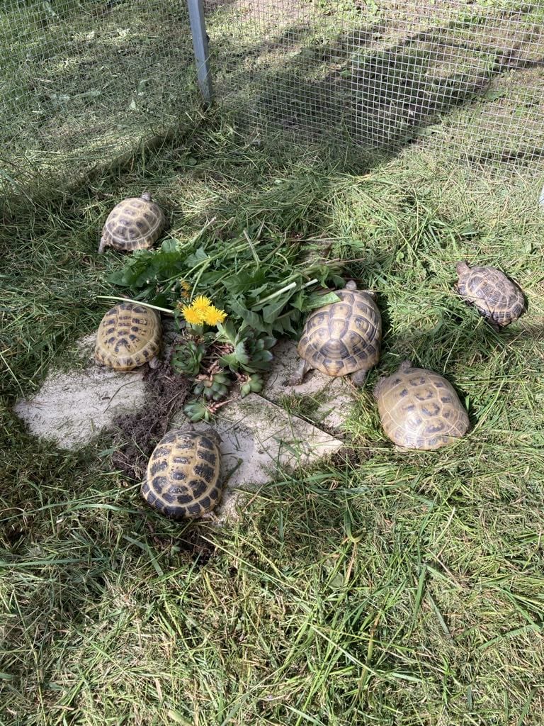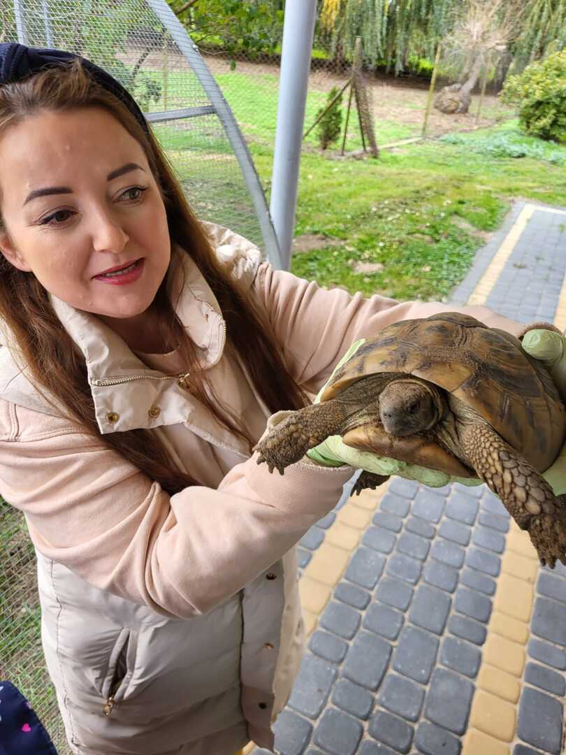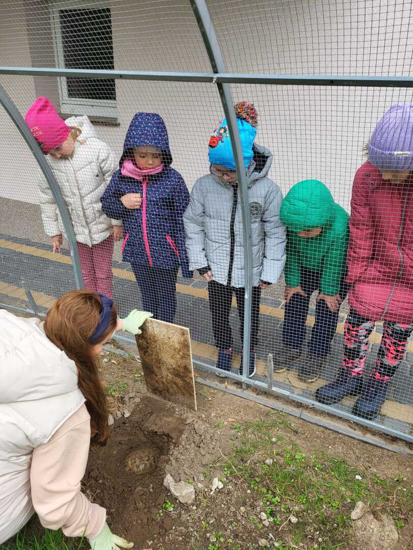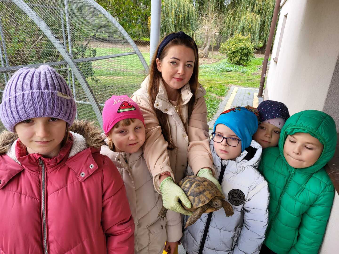 W poniedziałek 21.10 uczniowie klasy I,II i III odwiedzili naszych sąsiadów, państwa Łopatowskich. Dzieci poznały efekt pracy uprawy chryzantemów, a także zobaczyły hodowlę żółwi stepowych. Żółwiami pani Sylwia interesowała się i zajmowała się od dziecka. W czasie wizyty przekazała uczniom wiele cennych informacji o żółwiach i o swojej pasj... , dzisiaj najstarsza żółwica Marysia ma ponad 60 lat, a pozostałe 5 od 40 do 60, bardzo lubią liście mniszka lekarskiego. Kiedy jest zimno zakopują się w ziemi, a na zimę mieszkają w specjalnie przygotowanym miejscu w piwnicy, a przede wszystkim żółwie wcale nie są wolne, a wręcz przeciwnie potrafią się bardzo szybko przemieszczać. Bardzo dziękujemy pani Sylwii za ciekawe spotkanie.