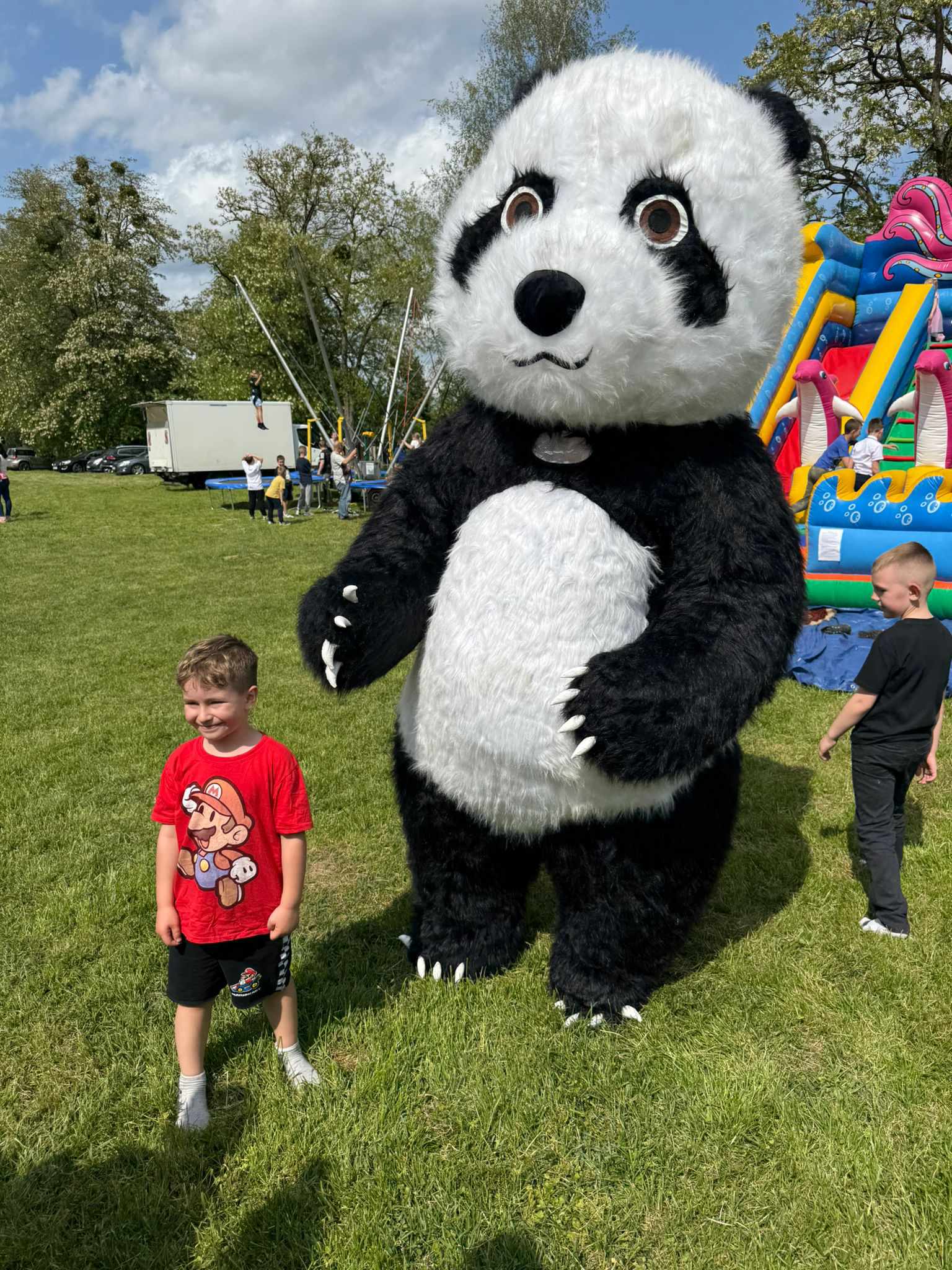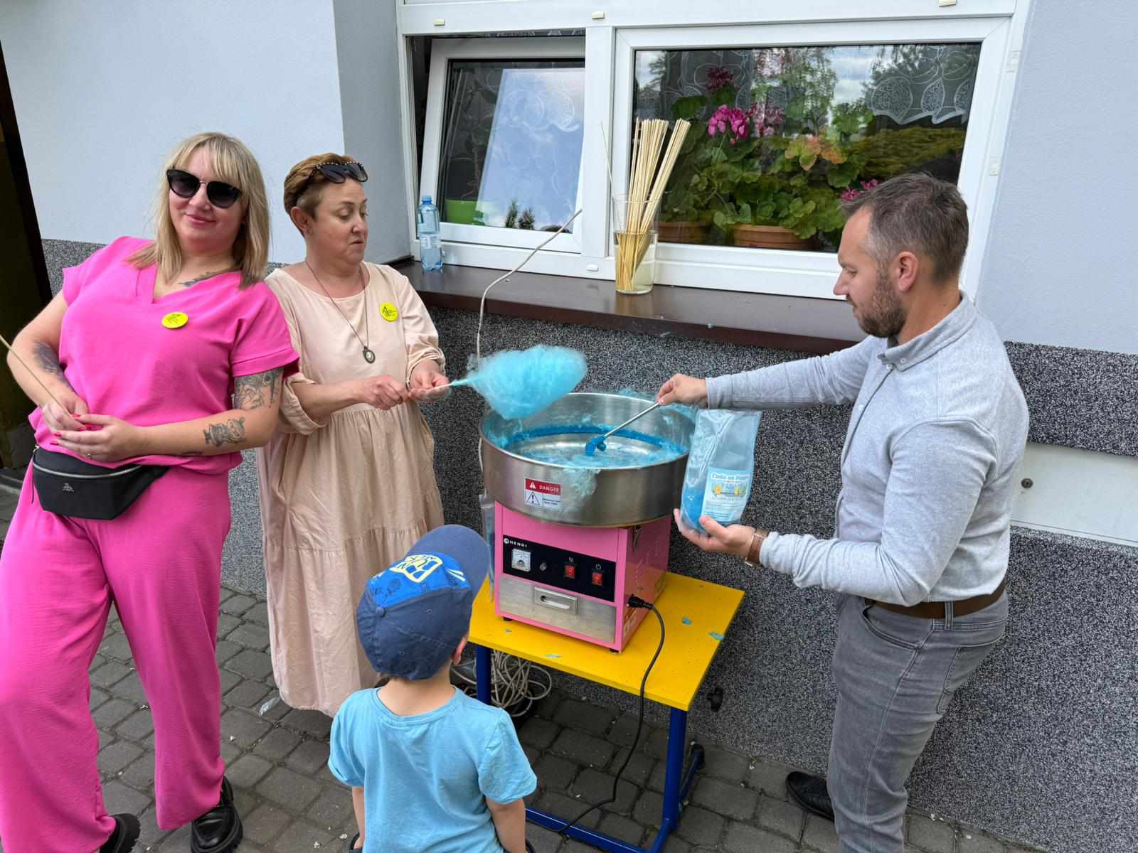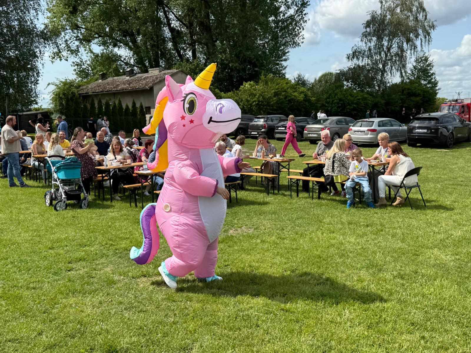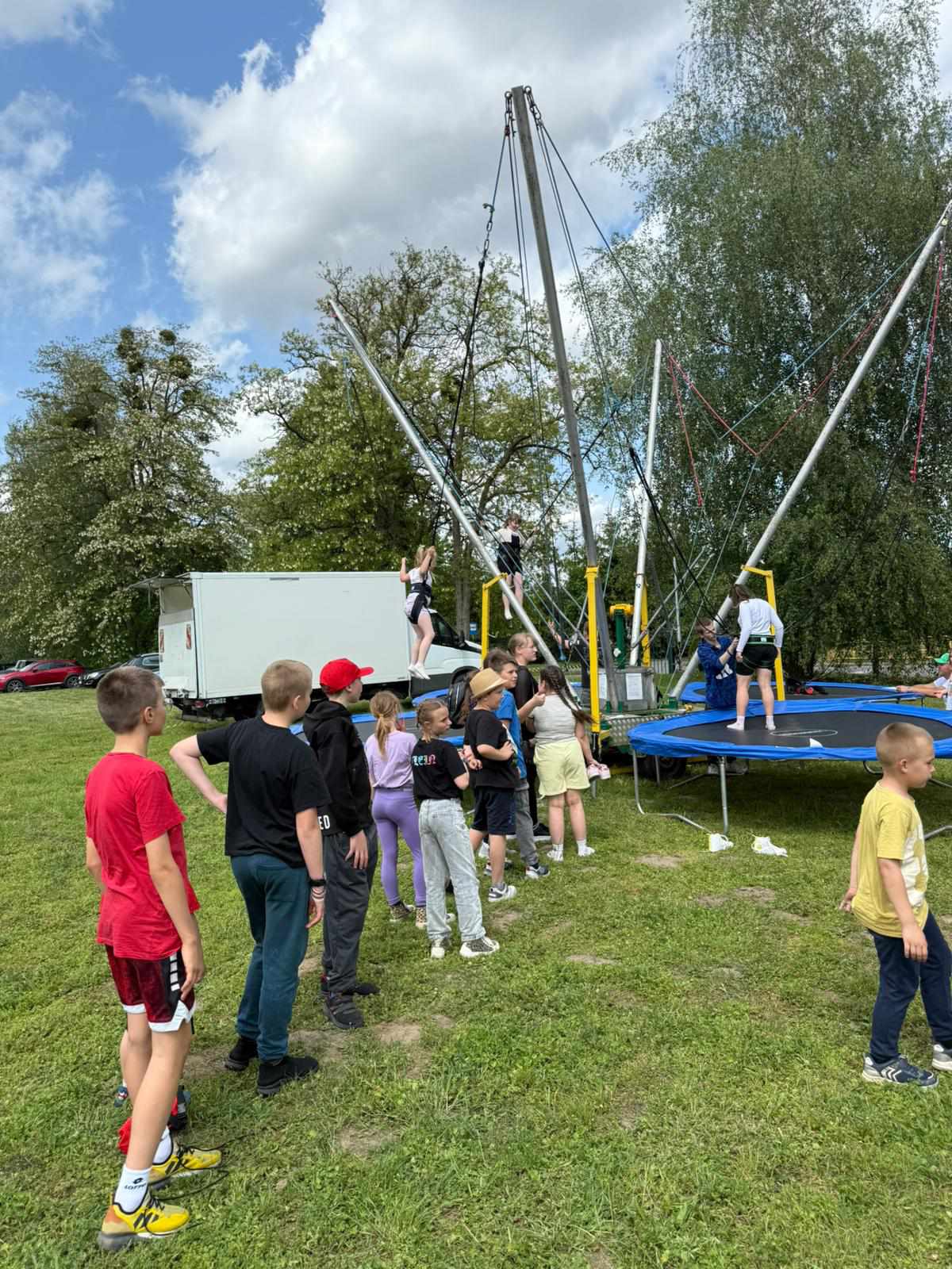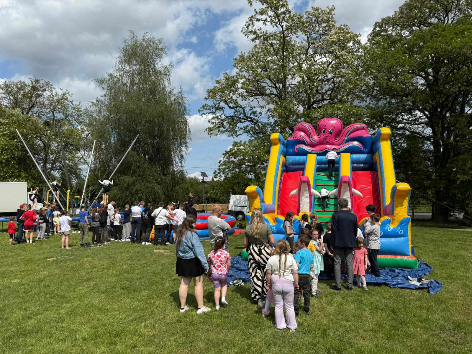 Rada Rodziców przygotowała dla dzieci mnóstwo atrakcji na zewnątrz: dmuchane zjeżdżalnie, maskotki panda i jednorożec, trampoliny, banji, konkursy, zabawy, kiełbaski z grilla, grochówkę wojskową, watę cukrową , słodycze, tort urodzinowy, pokazy strażackie, a temu wszystkiemu towarzyszyły dźwiękai muzyki zespołu A&A, którego liderem jest absolwent naszej szkoły Aleksander Maciejewski.