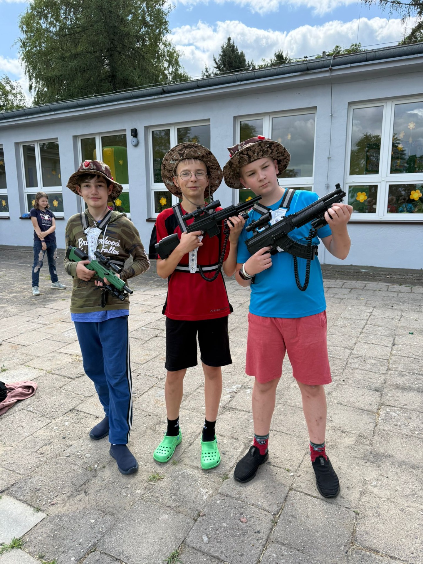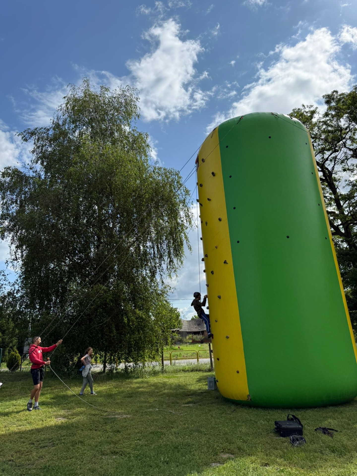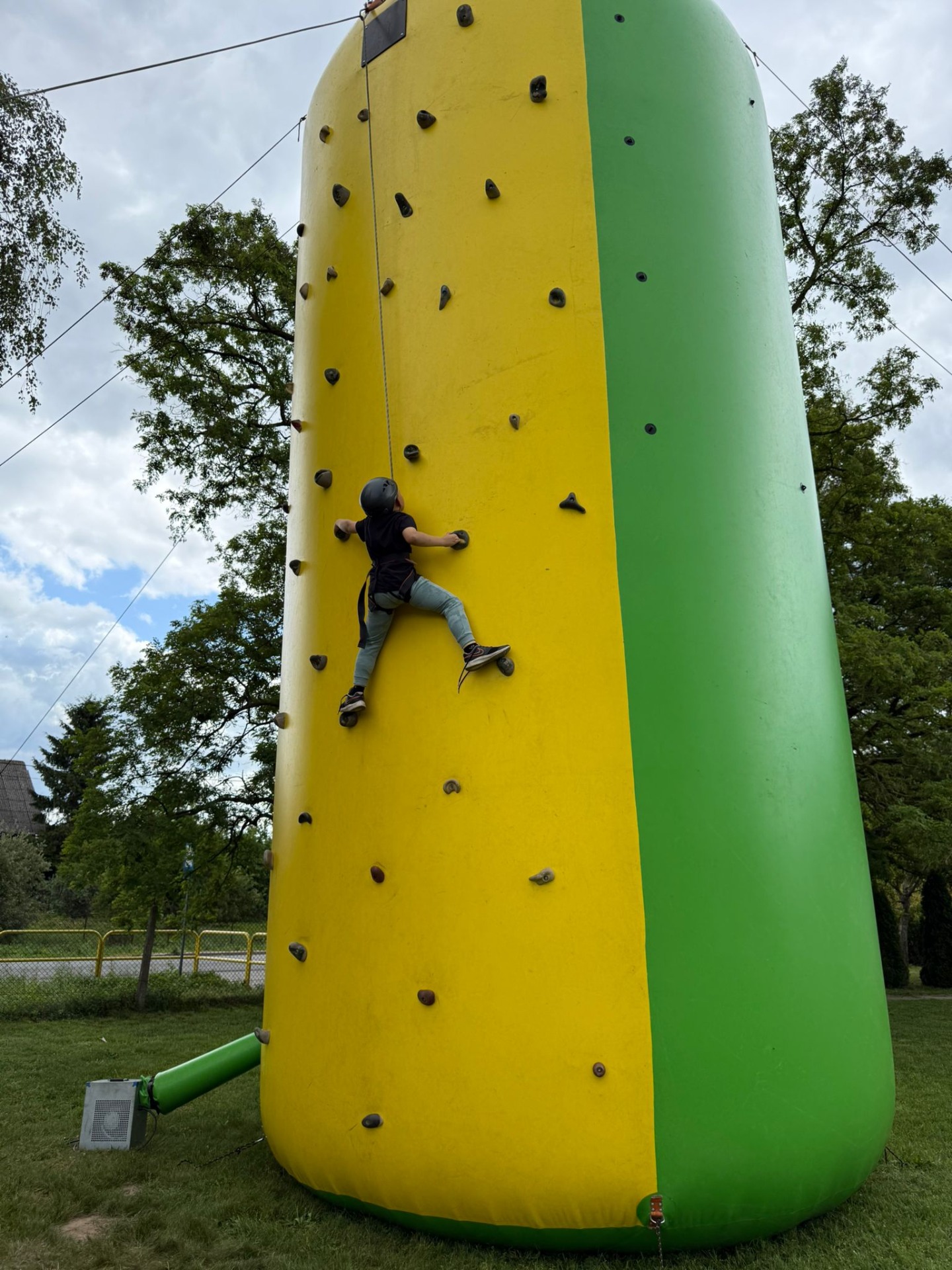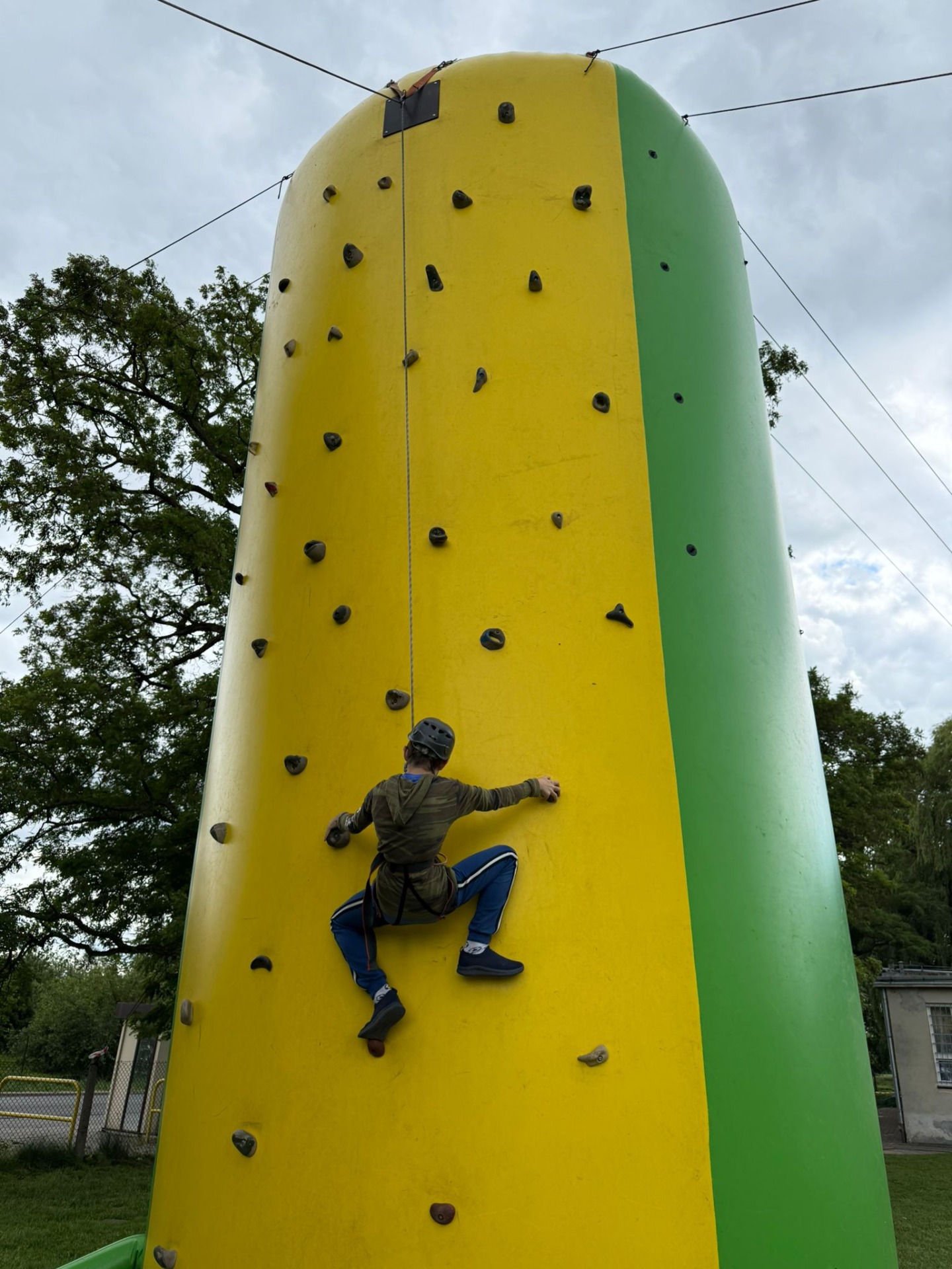Wśród atrakcji największym zainteresowaniem cieszyła się ścianka wspinaczkowa, na której uczniowie mogli sprawdzić swoją siłę, odwagę i zwinność. Radość towarzyszyła także zabawom w mini paintball – tu liczyła się celność, refleks i dobra strategia.