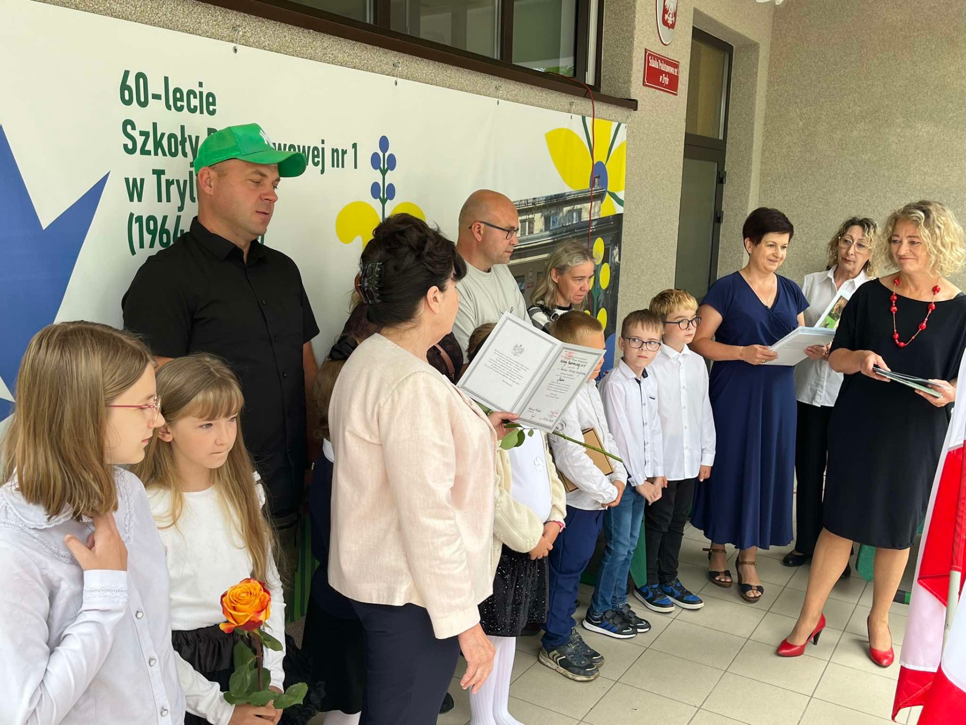 Dyrektor, nauczyciele i pracownicy obsługi Szkoły Podstawowej nr 1 w Trylu