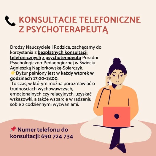 ZACHĘCAMY DO KORZYSTANIA Z KONSULTACJI Z PSYCHOTERAPEUTĄ