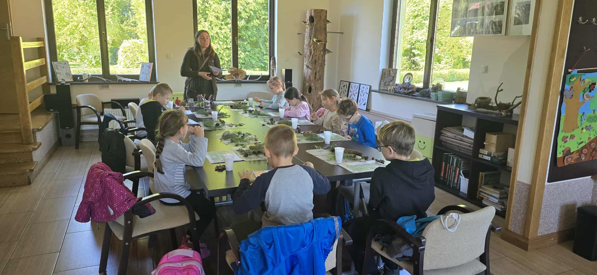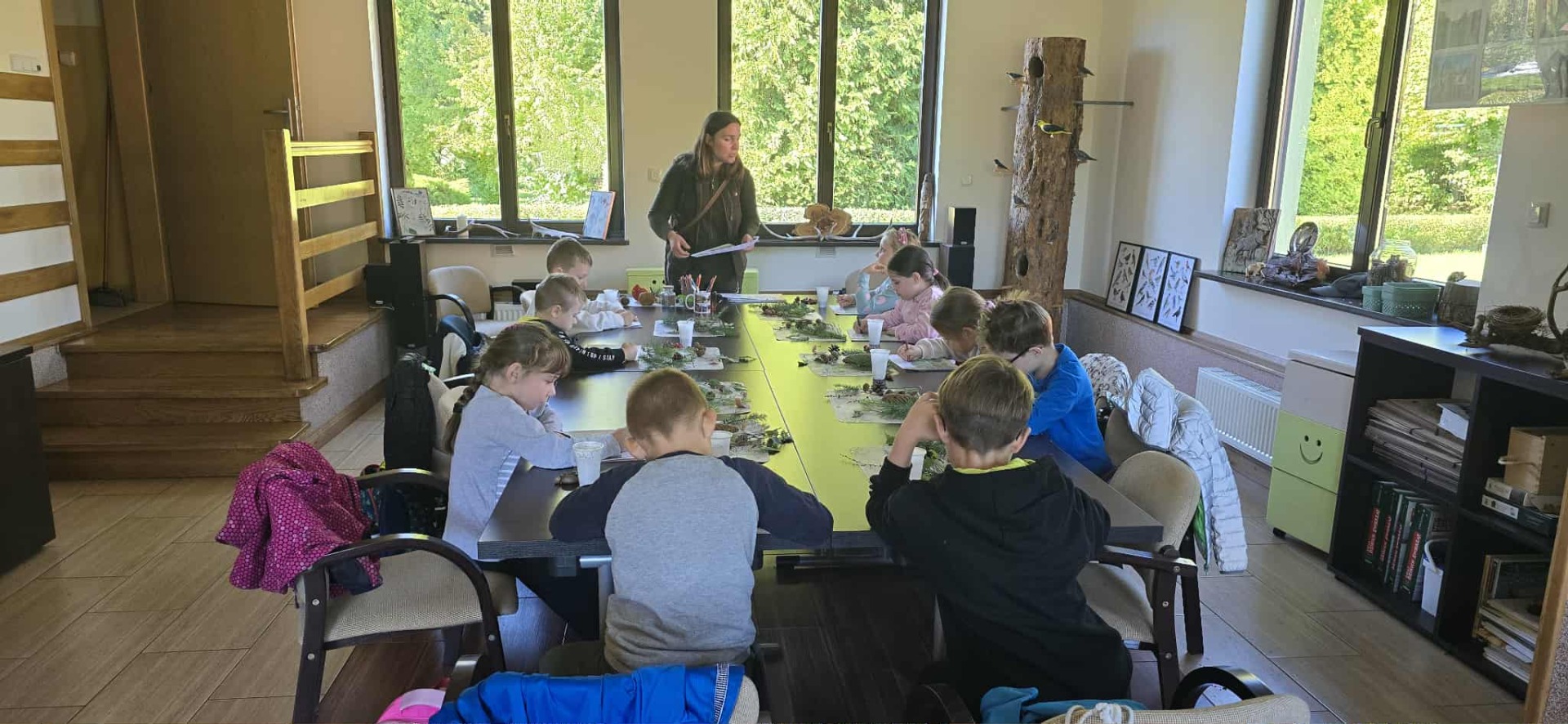 Na zakończenie wizyty dzieci zebrały się w kręgu, gdzie podsumowano wszystkie zdobyte tego dnia informacje. Każdy uczeń mógł podzielić się swoimi wrażeniami z wyjazdu, a także opowiedzieć, co najbardziej mu się podobało. Dzieci otrzymały drobne upominki związane z ekologią, które przypominały im o ważności ochrony przyrody.