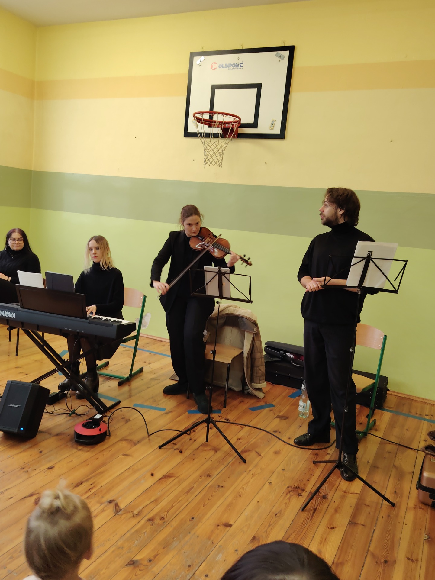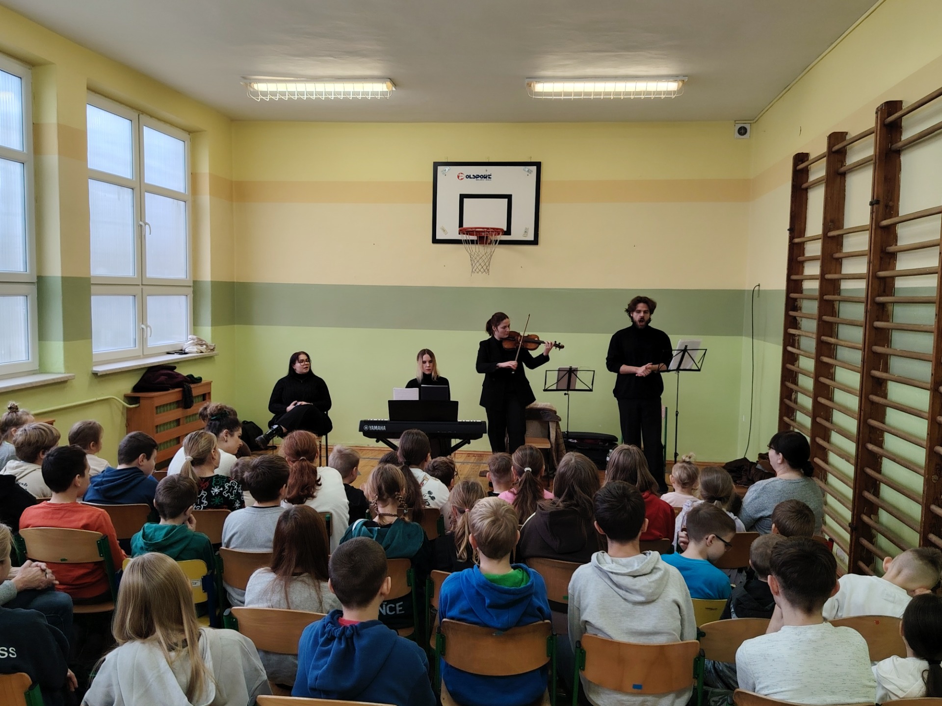 Dużym zainteresowaniem cieszyła się również część poświęcona budowie skrzypiec. Muzycy wyjaśnili, z jakich elementów składa się ten wyjątkowy instrument, jak powstaje jego brzmienie i dlaczego wymaga tak precyzyjnego wykonania. Możliwość zobaczenia skrzypiec z bliska była dla wielu uczniów fascynującym doświadczeniem.