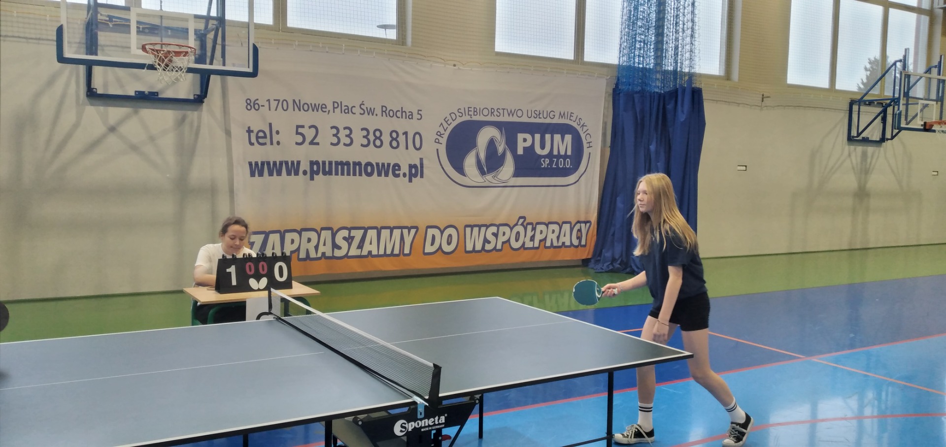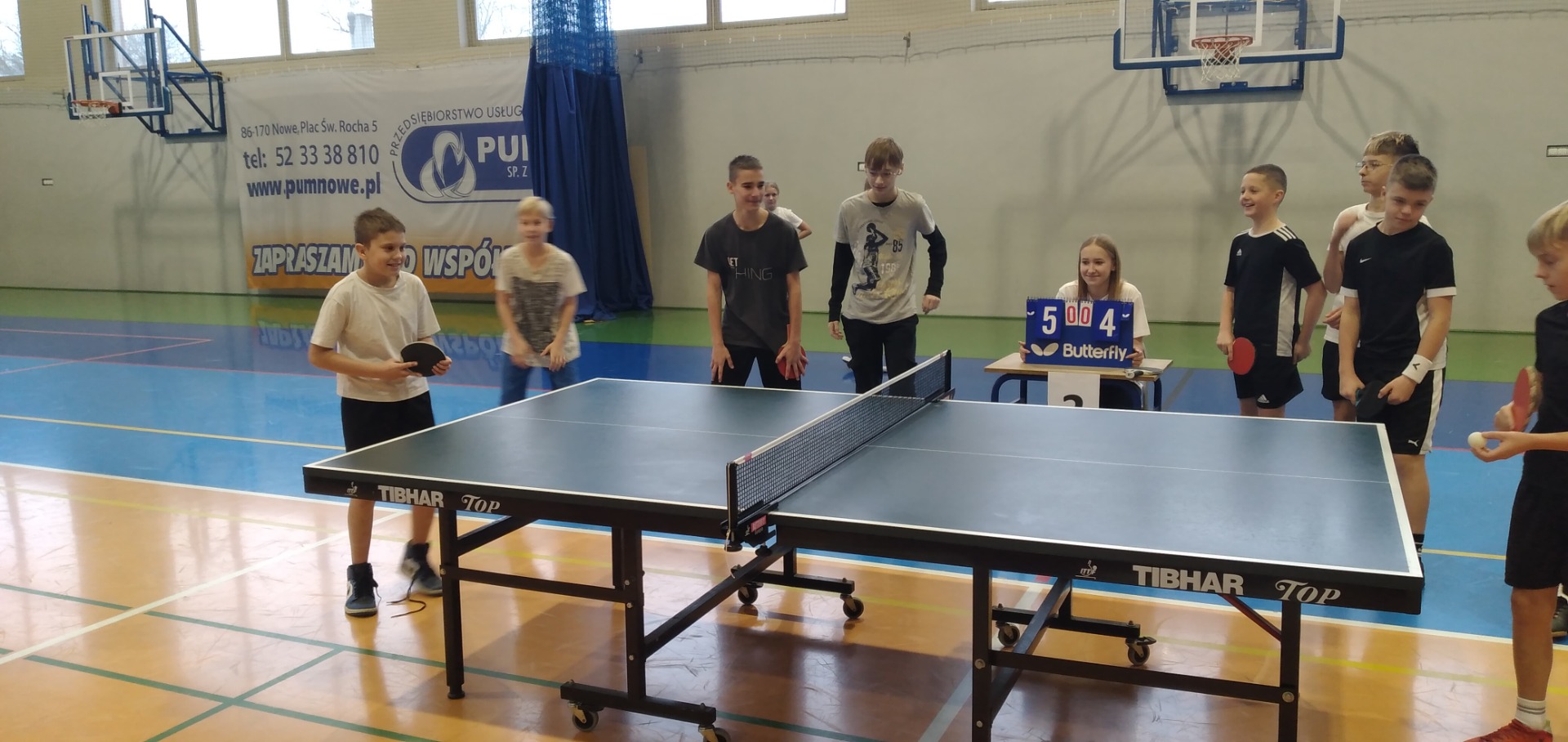 W dniu 4 grudnia 2025 nasi uczniowie rywalizowali w zawodach gminnych w tenisie stołowym w hali sportowo- widowiskowej w Nowem. Do rywalizacji przystąpiły wszystkie trzy szkoły podstawowe z naszej gminy oraz gościnnie z Warlubia. Łącznie rywalizowało 71 tenisistek i tenisistów. Rozegrano aż 116 spotkań , a całość wzmagań poprzedził mecz pokazowy zawodników ligowych Michała Wojewódka z Mateuszem Urbańskim.