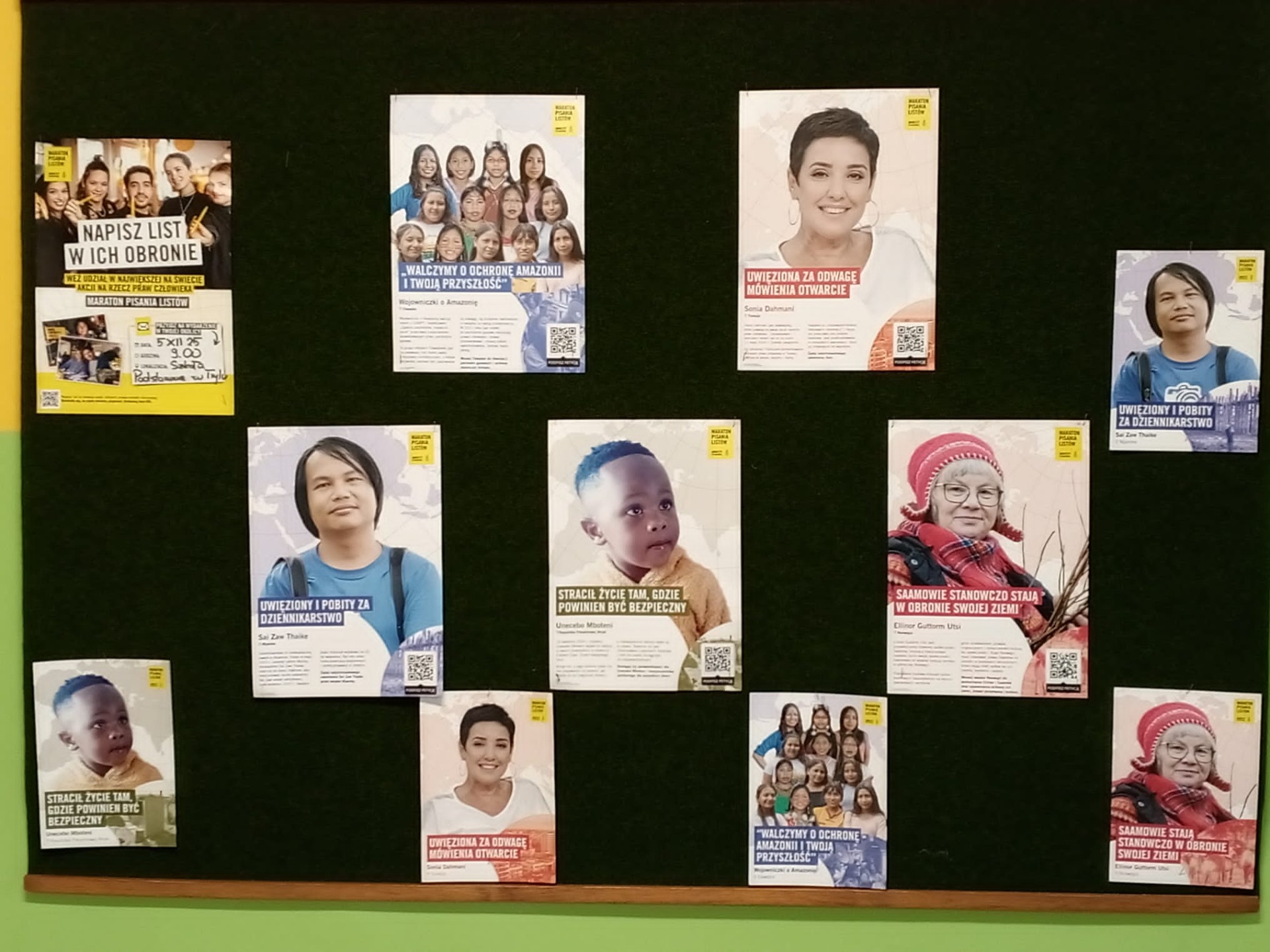 Nasza szkoła już po raz kolejny brała udział w Maratonie Pisania Listów. W tym roku Maraton odbywał się w dniach 1-14.12 w różnych miejscach w całej Polsce i w wielu krajach na świecie. Maraton jest organizowany przez Amnesty International. Pisaliśmy w języku angielskim listy w obronie praw człowieka, tam gdzie prawa człowieka nie są respektowane.Listy pisaliśmy do RPA w sprawie trzyletniego chłopca, który zmarł, bo wpadł do latryny o poprawę warunków sanitarnych dla dzieci w przedszkolach, doTunezji o uwolnienie Soni Dahmani, która występowała przeciw rasizmowi i do Ekwadoru w sprawie likwidacji pochodni gazowych,które zatruwają Amazonię. Czasami robiąc niewiele,czyli pisząc list, możemy zmienić czyjeś życie na lepsze.