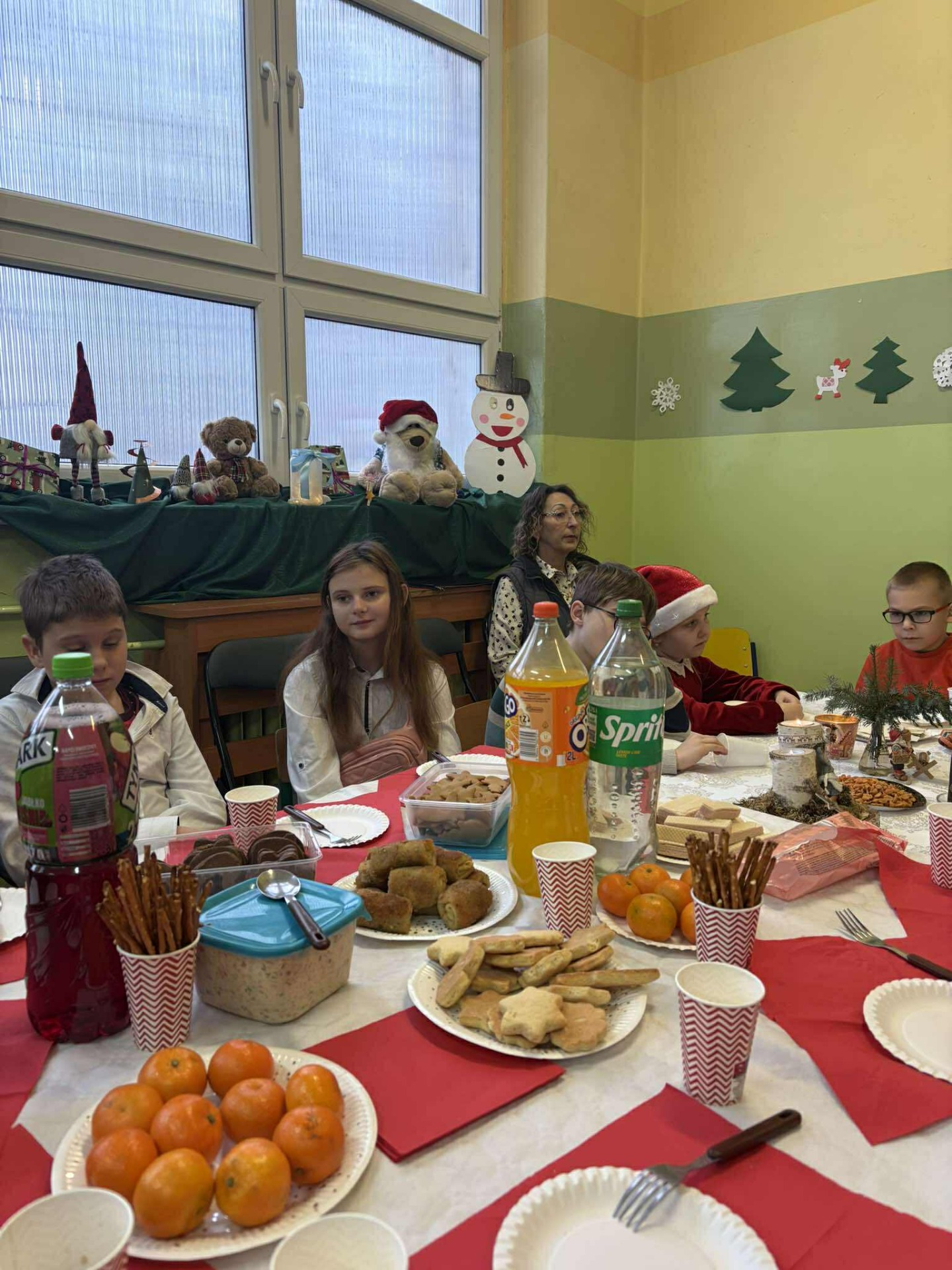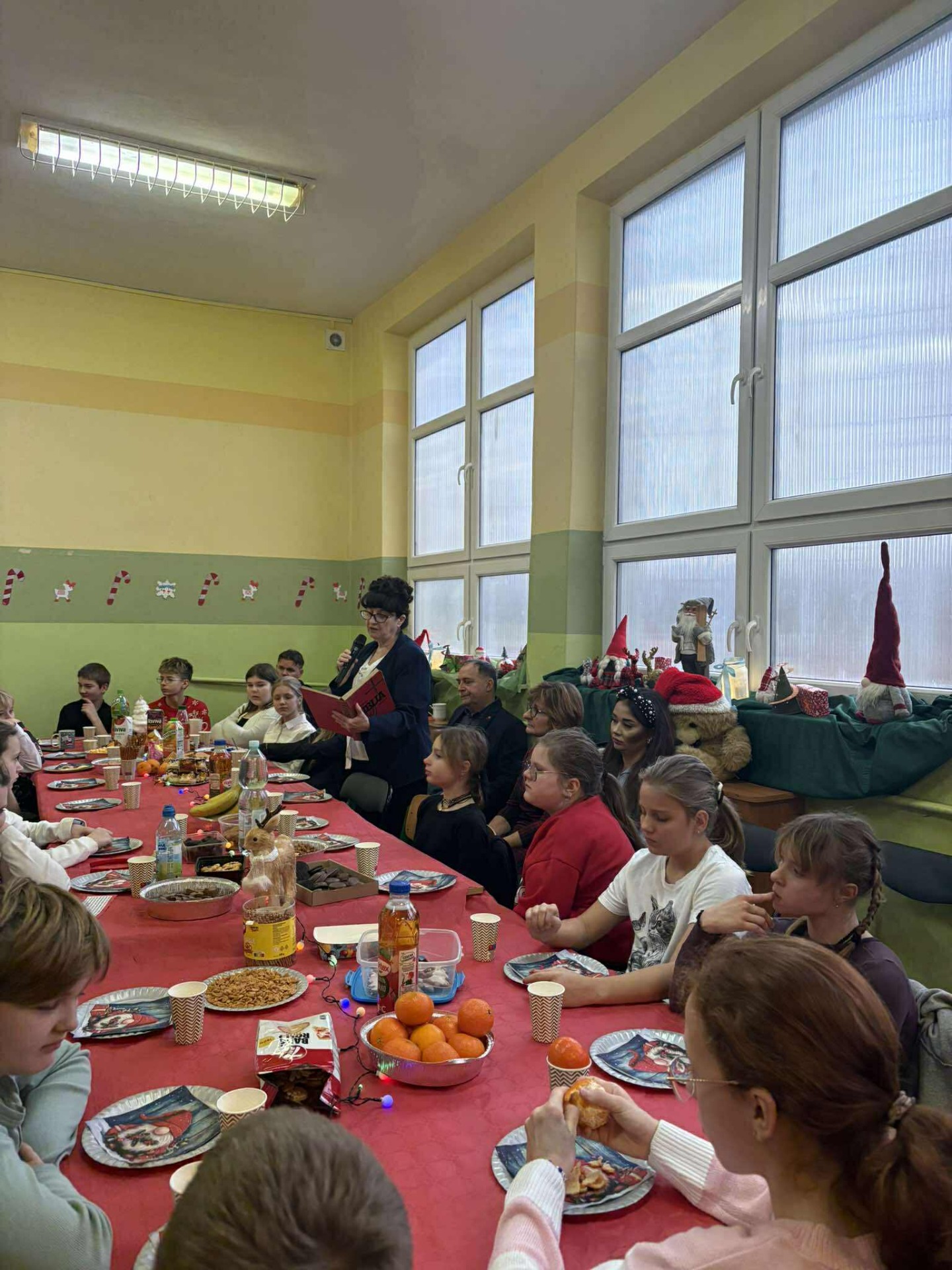 W naszej szkole odbyła się wyjątkowa, pełna ciepła i wzruszeń wspólna Wigilia, w której uczestniczyli uczniowie, nauczyciele, Pani Dyrektor oraz wszyscy pracownicy szkoły. Był to czas zatrzymania się w codziennym biegu, wspólnego bycia razem i przeżywania radości płynącej z nadchodzących Świąt Bożego Narodzenia.