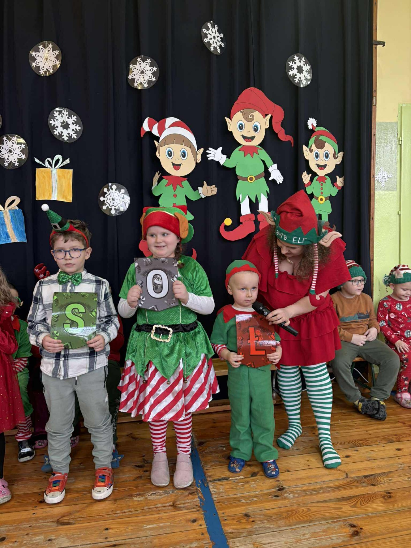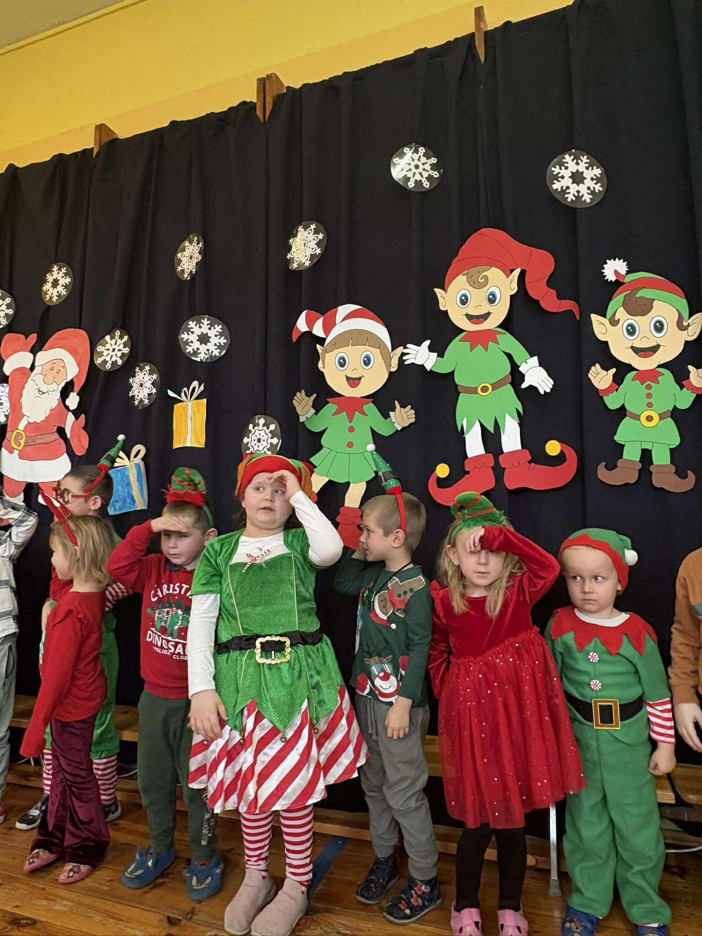 Szczególnym momentem spotkania były jasełka, przygotowane z ogromnym zaangażowaniem przez Panią Emilię Wojtinek oraz najmłodsze dzieci naszej szkoły – przedszkolaki. Mali artyści z wielką szczerością, dziecięcą radością i przejęciem opowiedzieli historię narodzin Jezusa. Ich występ poruszył serca wszystkich obecnych, wywołując uśmiechy, wzruszenie i niejedną łzę.