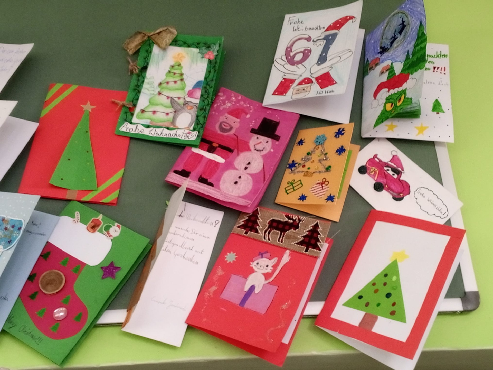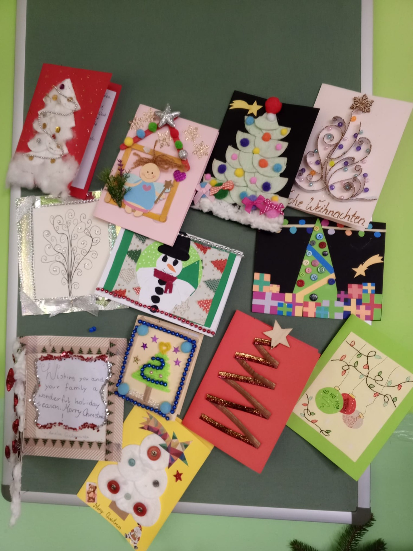 Weihnachtskarte" i również wykonywali kartki świąteczne, ale życzenia układali w j.niemieckim, ponieważ uczą się już drugiego języka obcego.